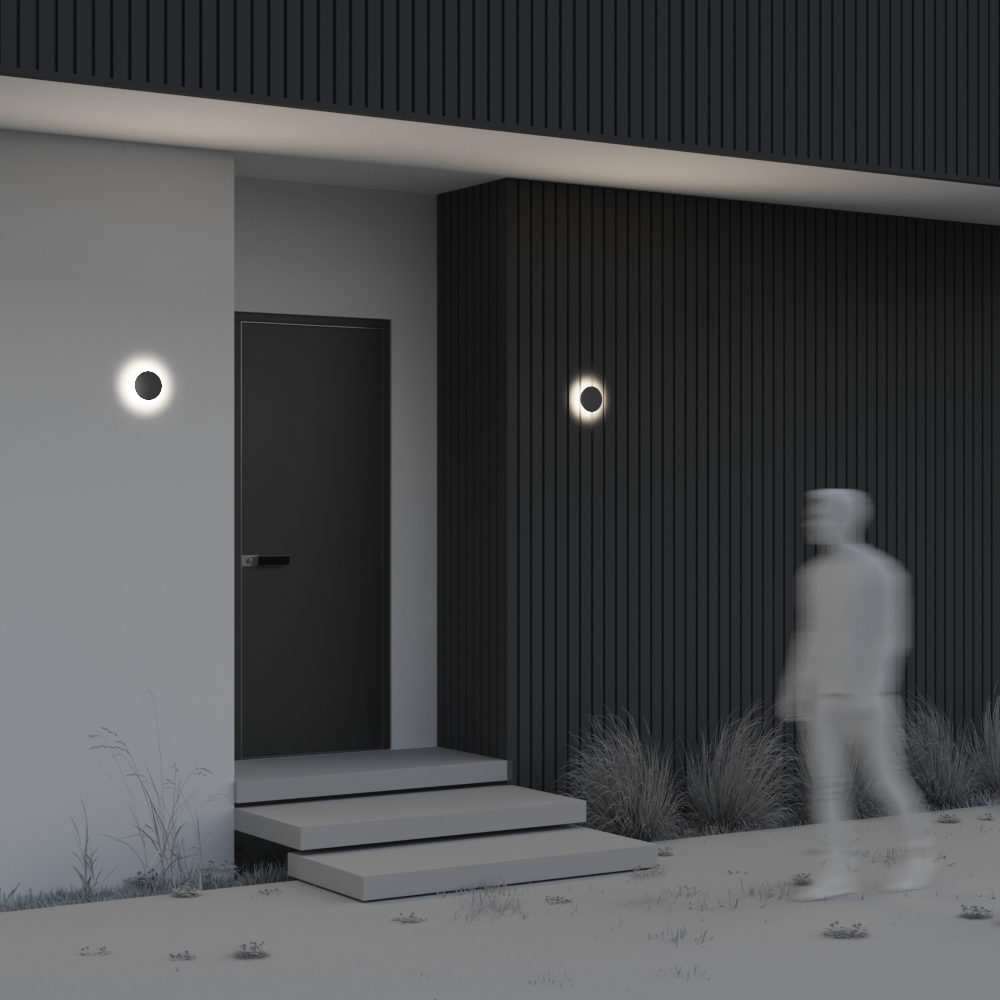 Материал корпуса — металл, цвет — графит. Высокий уровень защиты от пыли и влаги IP 65. Устойчивость к коррозии и перепадам температур. LED-источник света с нейтральной цветовой температурой 3000 К. Серия включает настенные и ландшафтные светильники.