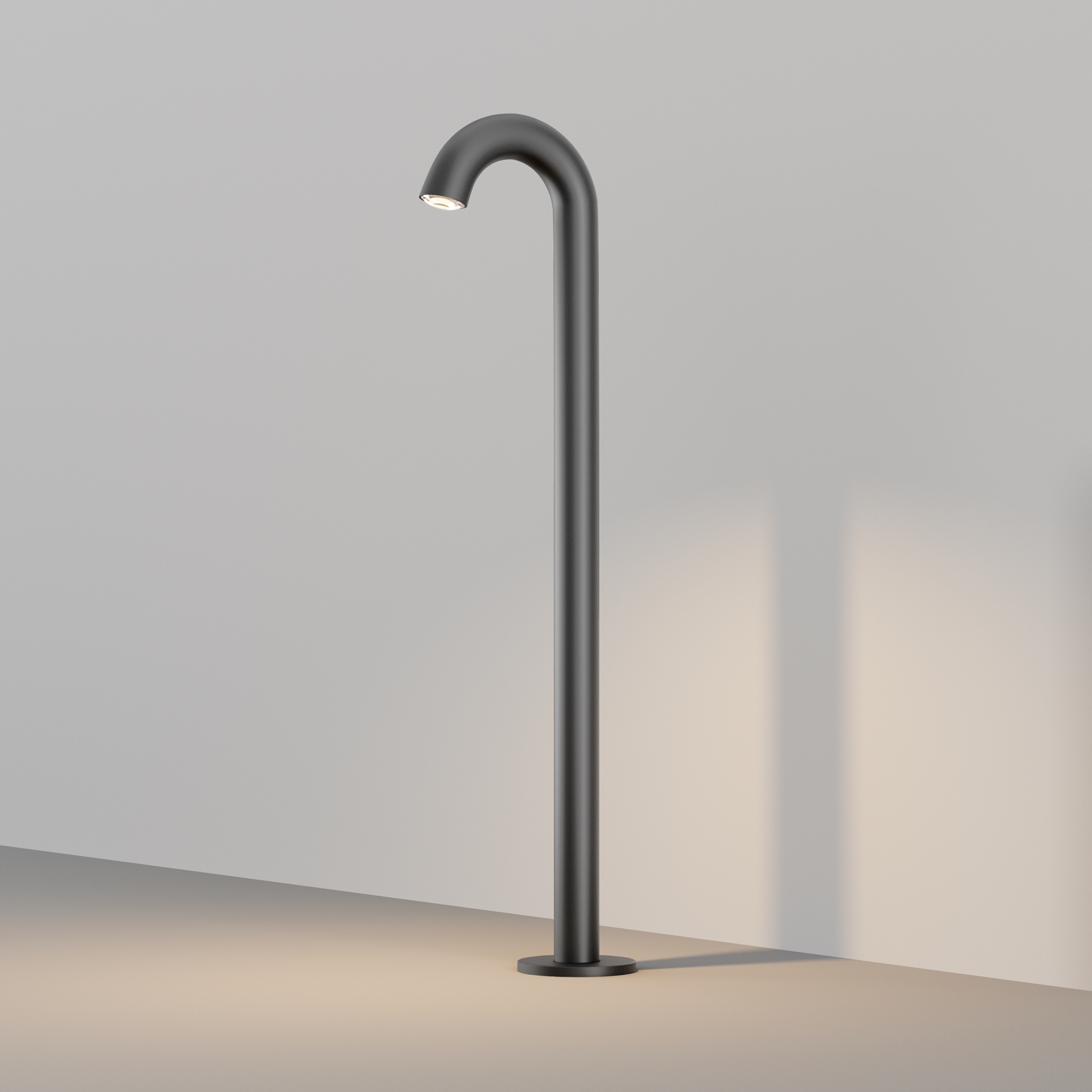Материал корпуса — алюминий, цвет — графит. Оригинальный дизайн корпуса. LED-источник света, цветовая температура — 3000К. Высокая степень защиты от влаги — IP65.
