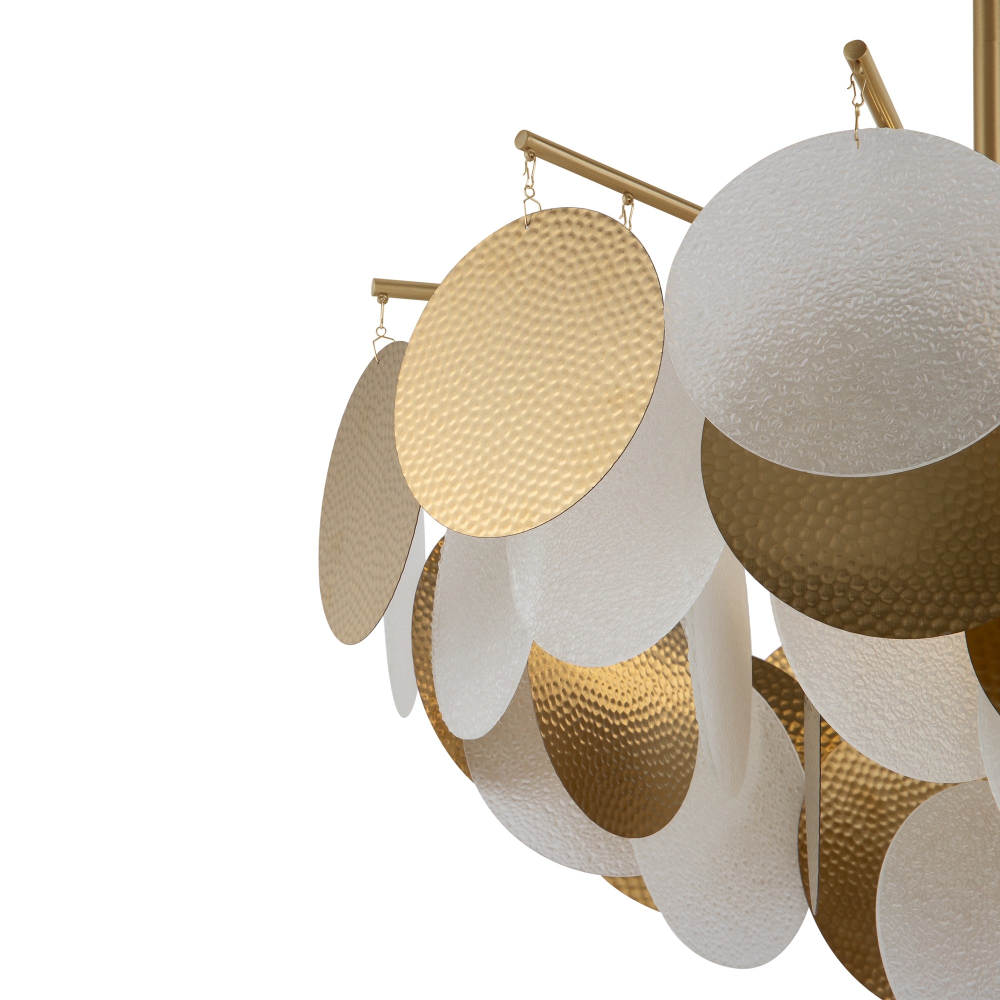 Магия фактур запечатлена в дизайне серии Porto. Изюминка модели – декор в виде тонких округлых пластин с эффектом замороженного стекла. Популярная серия имеет два цветовых решения: декор цвета рисовых полей, а также комбинация фактурного стекла и металлических пластин в цвете латунь. Арматура светильников в серии представлена в двух оттенках – латунь и никель. Тонко очерченные рожки и воздушный стеклянный декор создают трендовый эффект парения. Светильник словно замирает в воздухе, образуя своеобразную визуальную иллюзию. Модель предназначена для комнат, оформленных в стиле ар-деко, модерн, неоклассика. Серия включает люстры различного диаметра на 6 и 8 ламп.