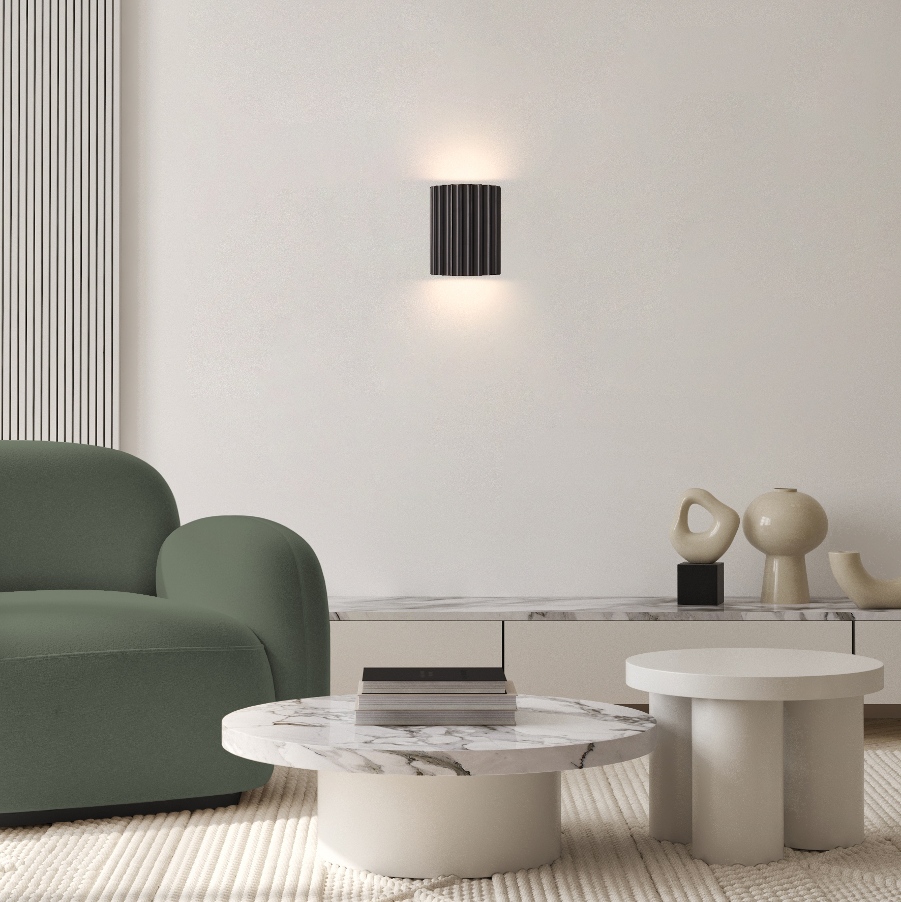 Арматура ресина и металл. Цвета арматуры матовый белый, серый и матовый черный. Глубокий рельеф. Цвета черный, серый, белый. LED источник светит вверх и вниз. Регулируемая цветовая температура — 3000К-4000К-6000К.