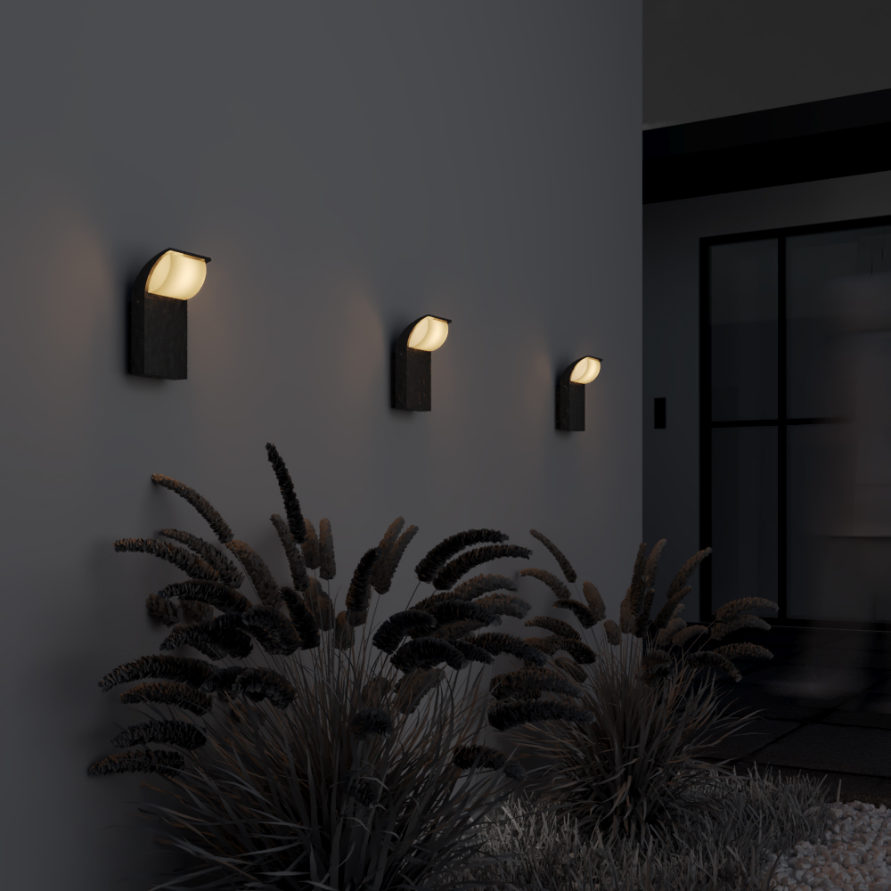 Материал корпуса — алюминий, цвет — графит. Белый матовый рассеиватель. LED-источник света. Цветовая температура 3000К. Наличие встроенного датчика движения у настенной модели. Степень защииты IP65 и IP44 настенной модели с датчиком движения.