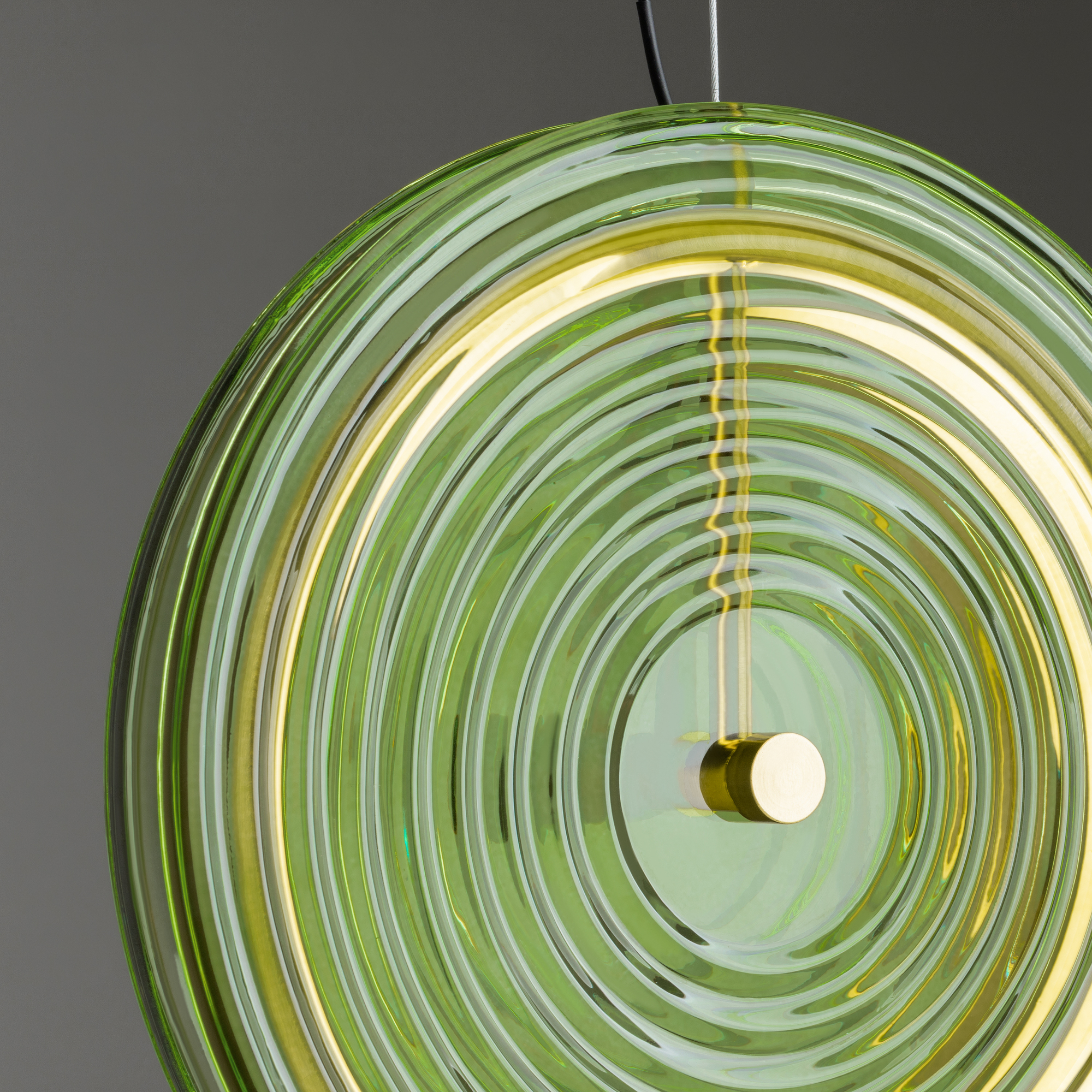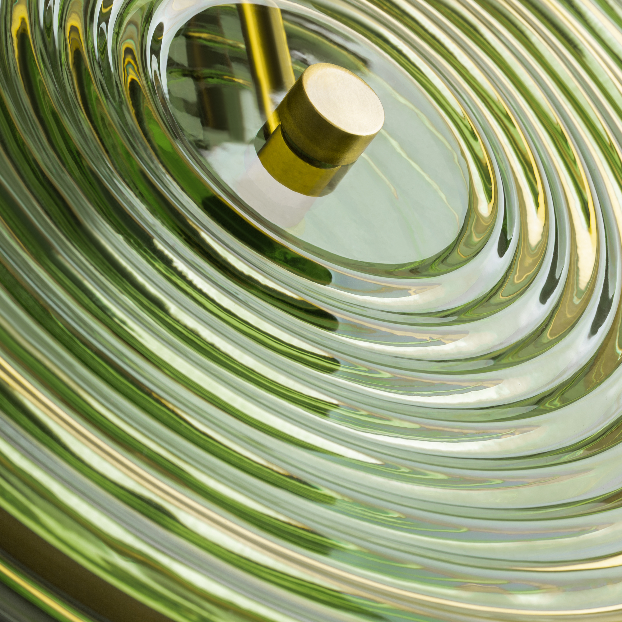 Арматура — металл. Цвет арматуры латунь. Плафоны из стекла в форме леденцов выполнены в четырех цветах: серый, зеленый, прозрачный и желто-оранжевый. Широкий спектр типов светильников: торшеры, настенные бра и подвесы. LED источник света. Цветовая температура 3000К.