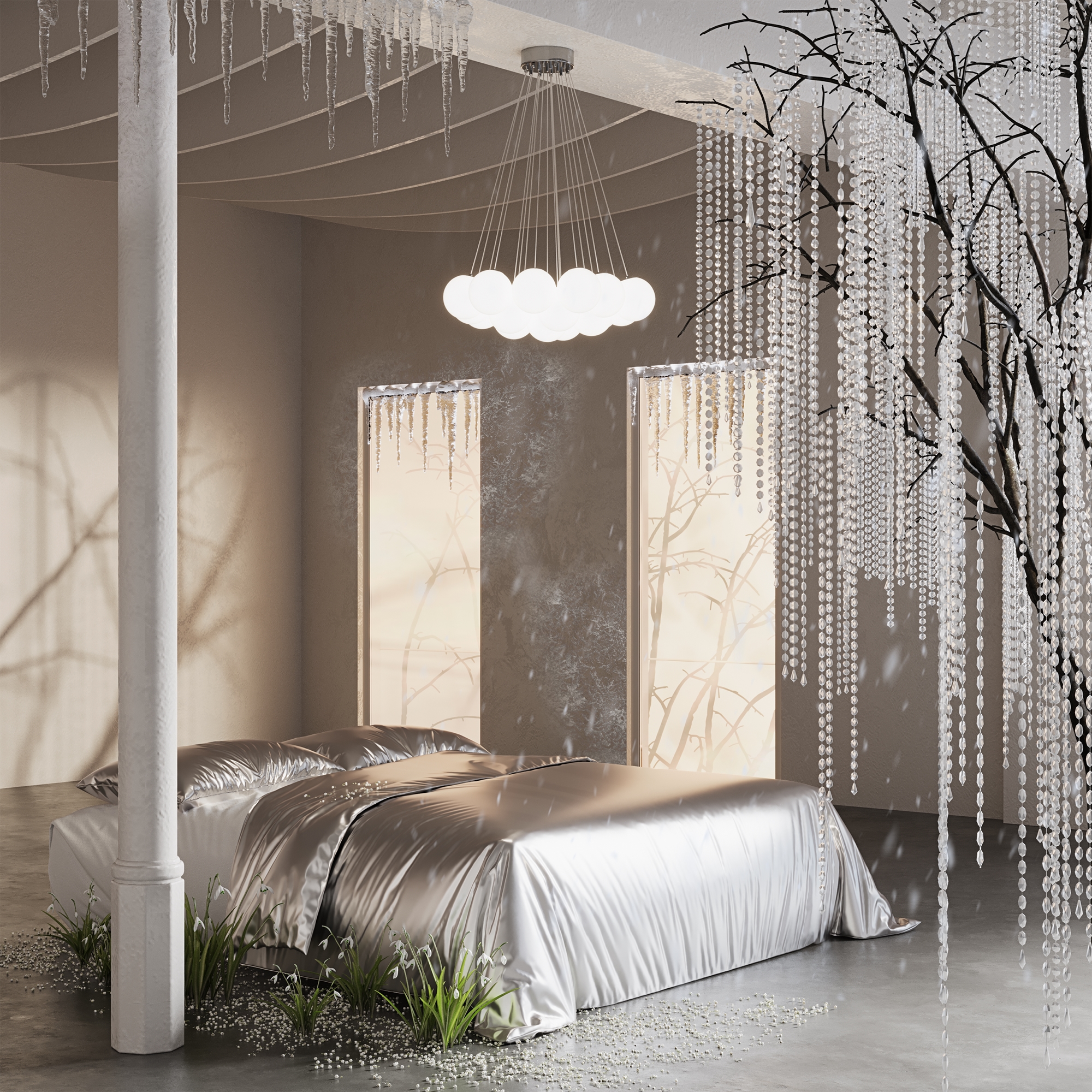 Материал арматуры — металл, цвет — хром/латунь. Подвесные светильники c цоколями E14/E27/G9. Белые стеклянные плафоны с рисунком в виде космических планет крепятся на тонких тросах, которые регулируются по высоте, создавая эффект парящих облаков.
