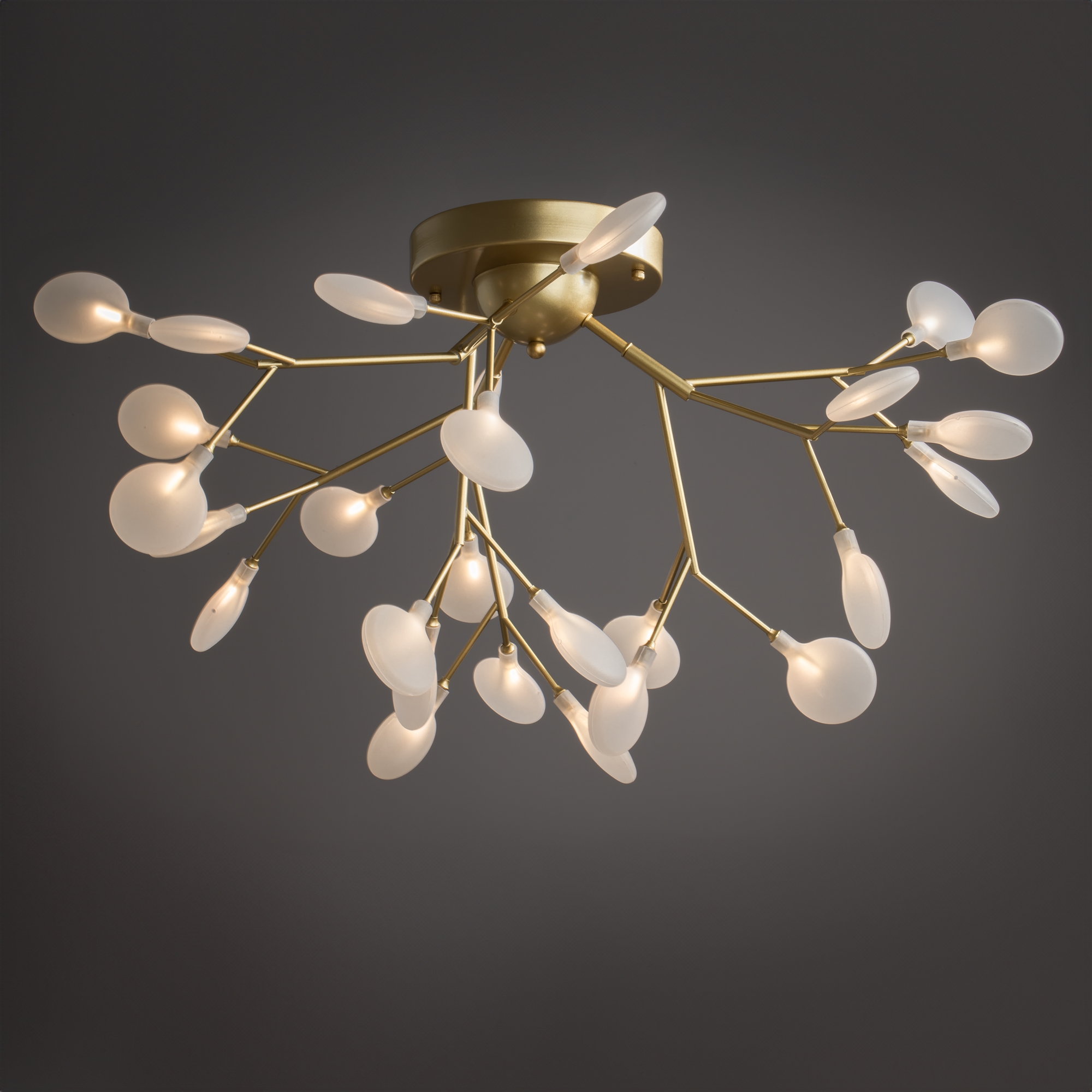 Материал арматуры – металл. Оттенки – черный, белый. Стеклянные плафоны оригинальной формы. Трендовый флористический дизайн. Источник света – лампа G4.
