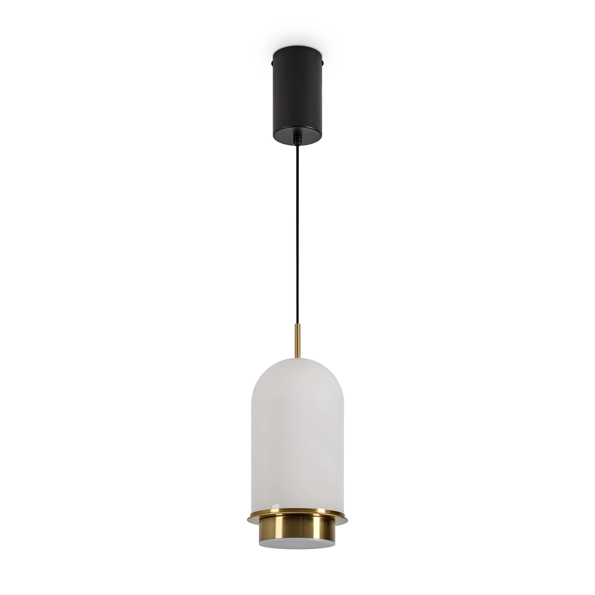 Арматура — металл. Стеклянные плафоны с имитацией мрамора и полосками в ретро-стиле. Интегрированный LED источник света 2700К, угол рассеивания 360°. Высота регулируется.