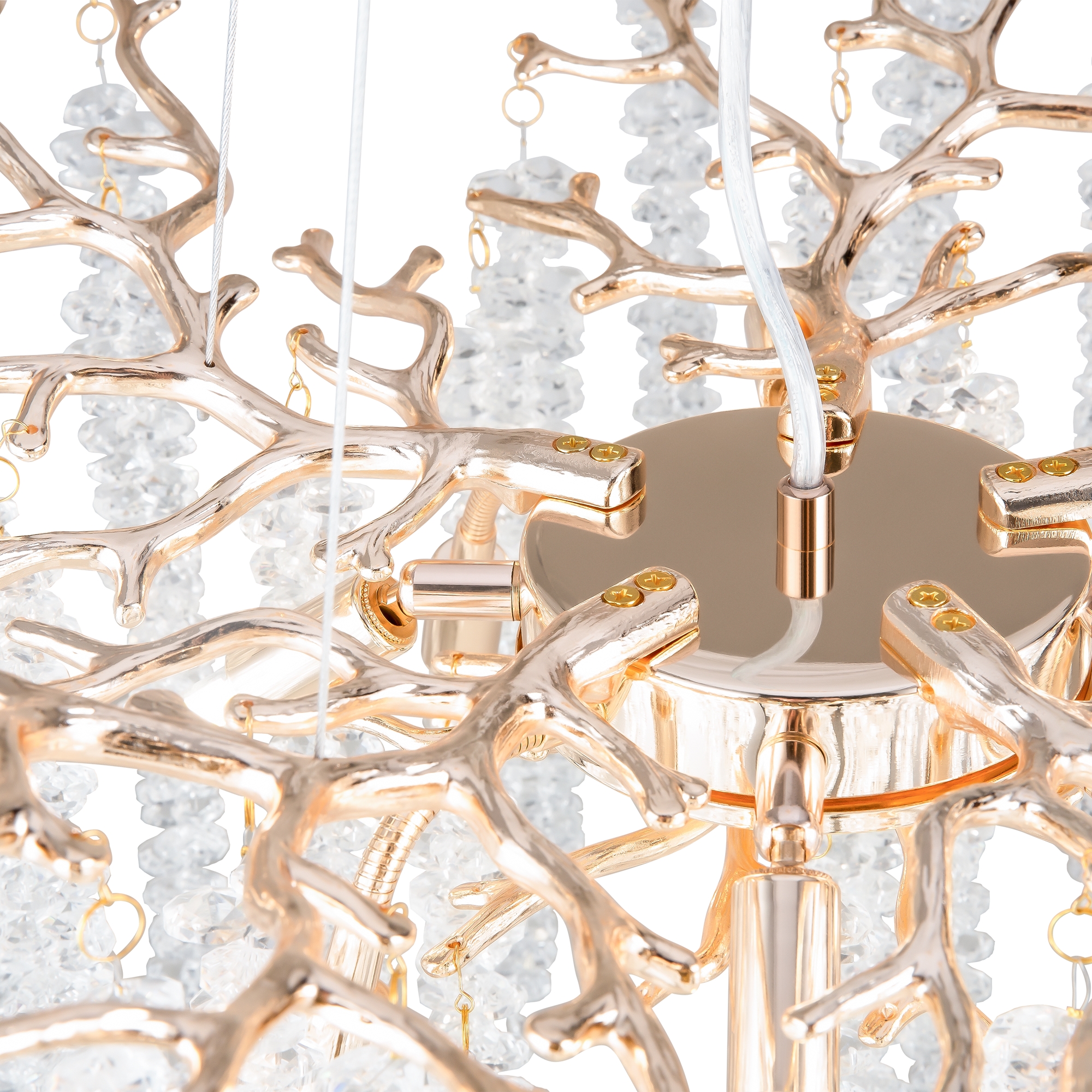 Материалы арматуры —металл, цвет — золото. Хрустальные декоративные элементы напоминают капельки — создают глубокие переливы света. Дизайн в трендовой растительной тематике. Источник света — лампа с цоколем G9 и с поворотной функцией.