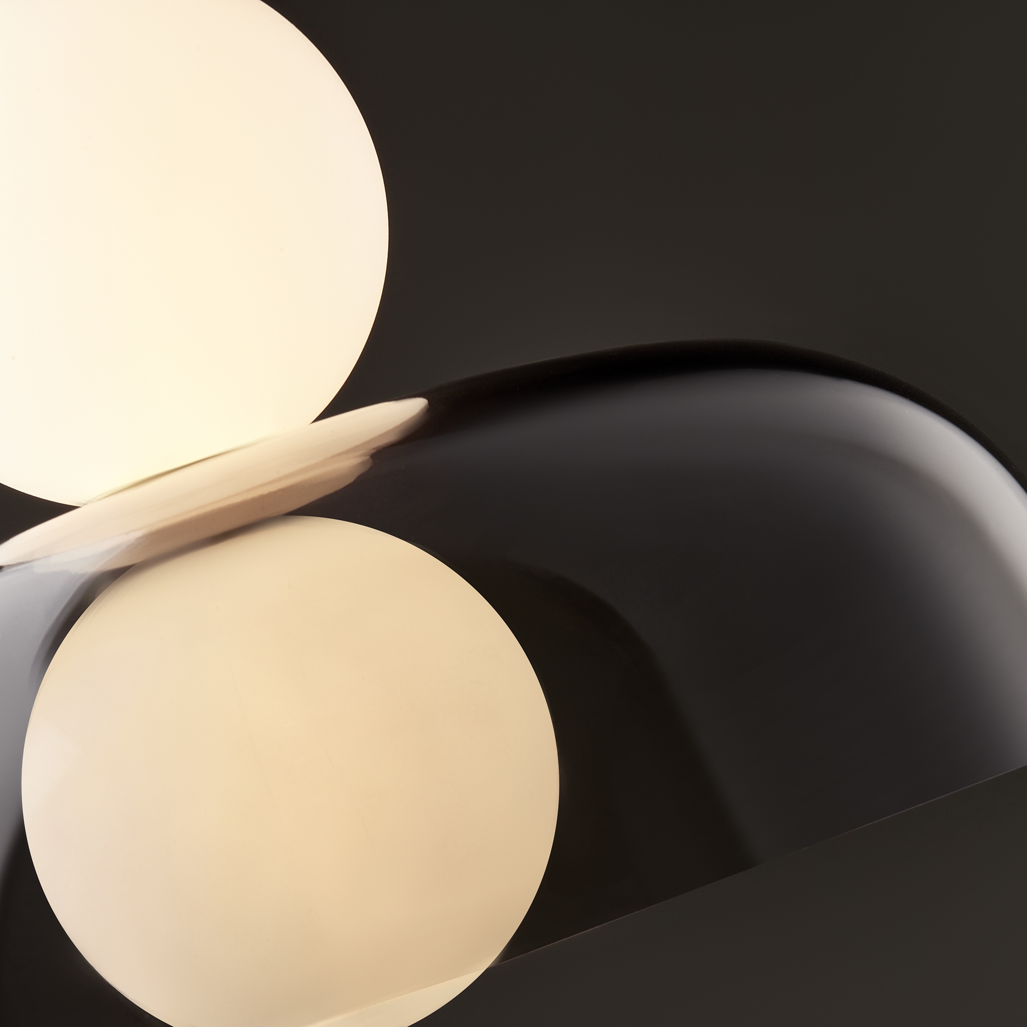 Арматура — металл, цвет — латунь. Стеклянные плафоны в виде сдвоенных матовых “шариков” дополнены широкими декоративными плафонами из стекла двух оттенков: дымчатый и янтарный. LED-источник света. Цветовая температура — 3000К. Светильники подойдут для светлых интерьеров и детских комнат.