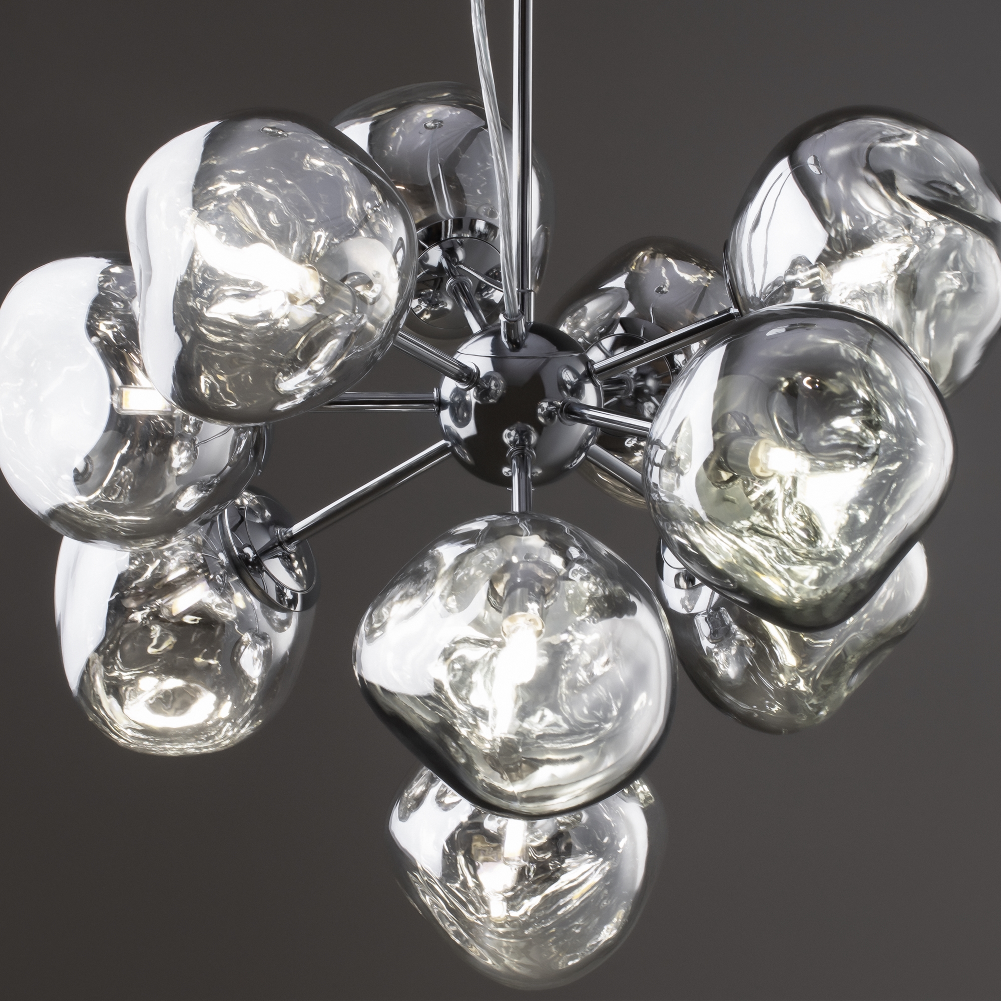 Арматура — металл, цвет — хром. Шарообразные плафоны с зеркальным эффектом и переливами. Материал — стекло с серебристым напылением. Источник света — лампа с цоколем — E27.