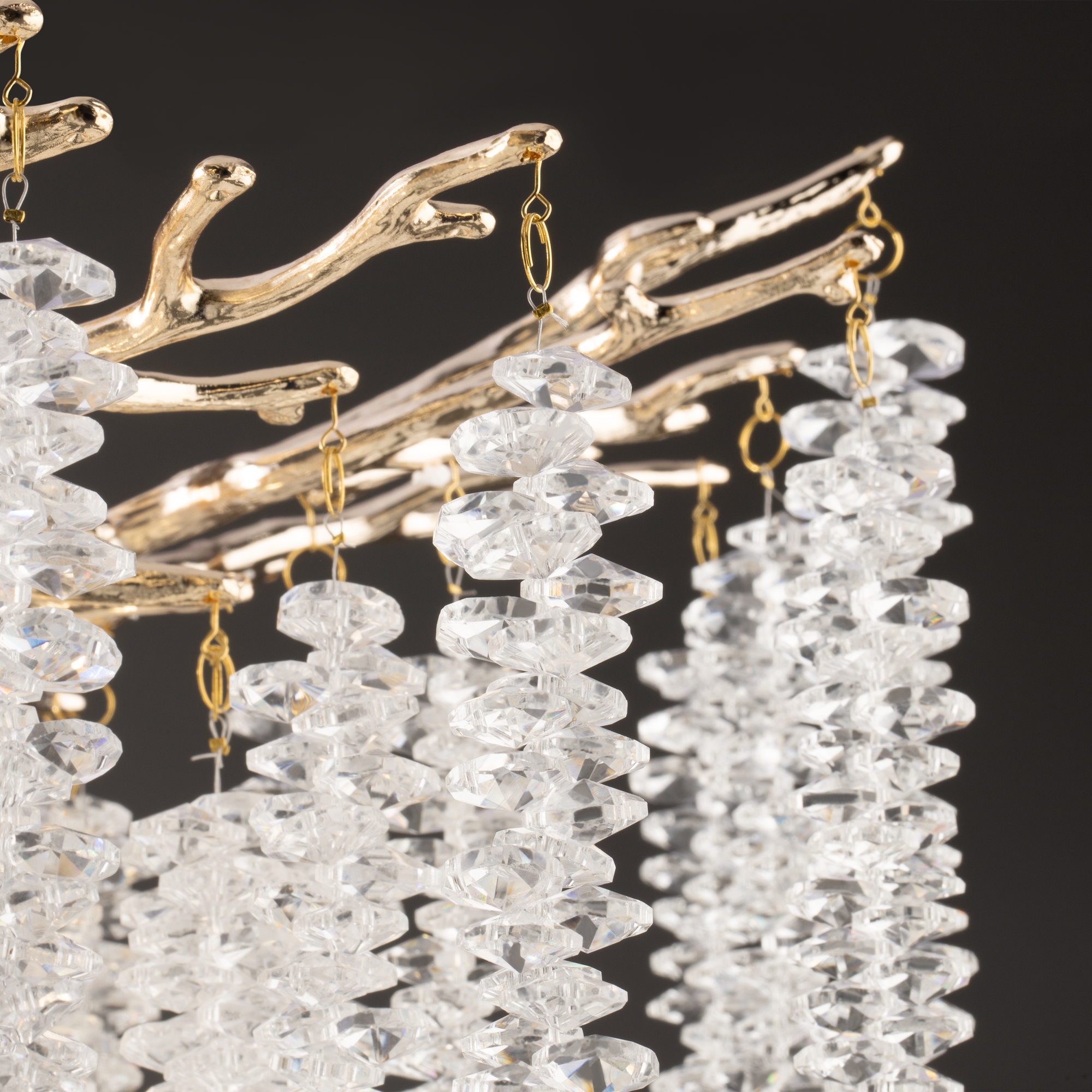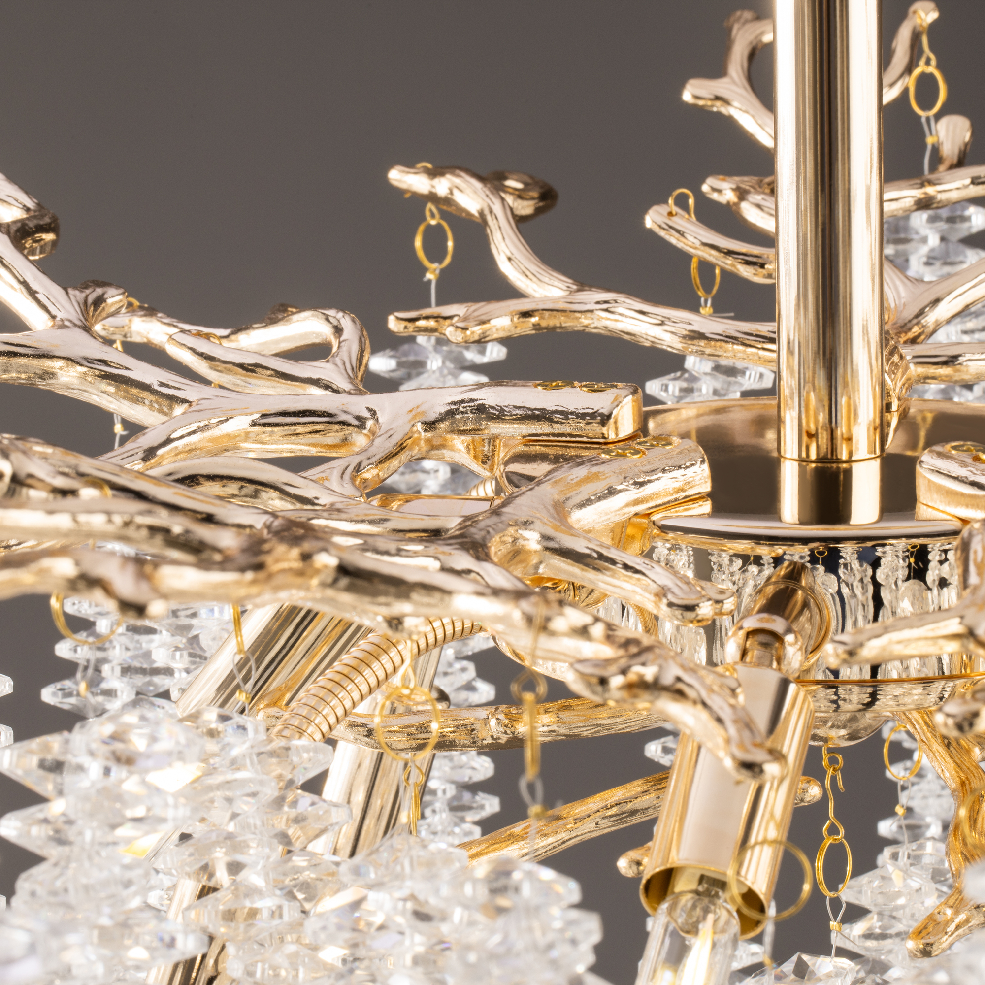 Материалы арматуры —металл, цвет — золото. Хрустальные декоративные элементы напоминают капельки — создают глубокие переливы света. Дизайн в трендовой растительной тематике. Источник света — лампа с цоколем G9 и с поворотной функцией.