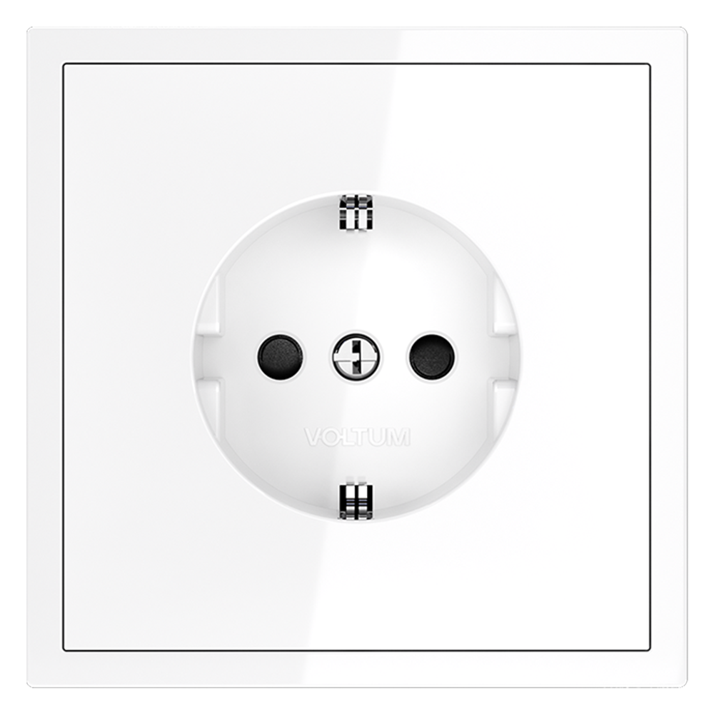 Розетка встраиваемая VOLTUM S70 с заземлением и защитными шторками, 16А, (белый глянцевый)