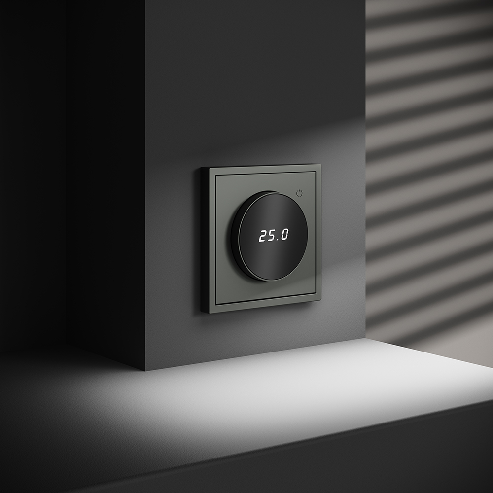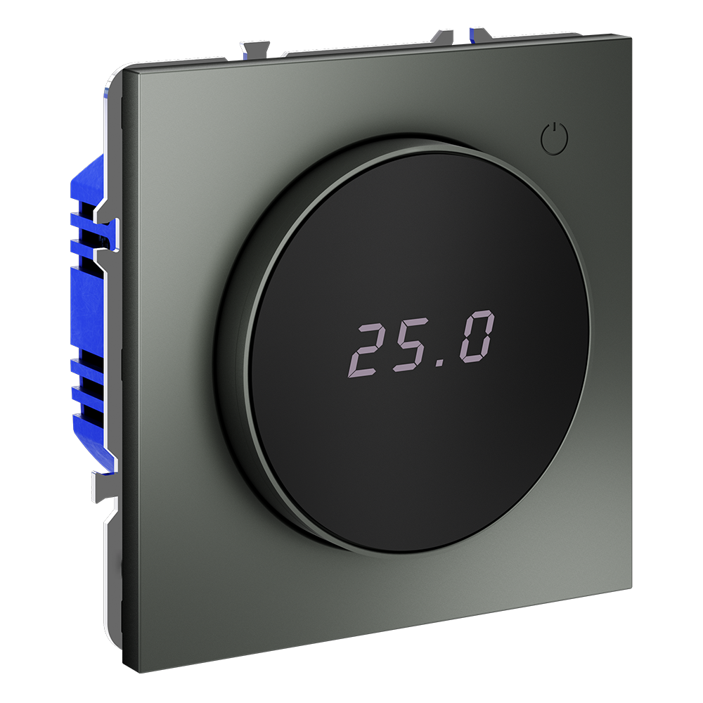 Место установки. Терморегуляторы Voltum предназначены для регулирования температуры электрического теплого пола. Актуальны как в городских квартирах, так и в загородных дачных домах без центрального отопления. Корпус. Дизайн терморегуляторов Voltum сочетается со стилем остальных электрических устройств компании. Они совместимы со всеми рамками S70. Материал внешних декоративных элементов — поликарбонат. Конструктивные особенности. Терморегулятор предназначен для работы с электрическими тёплыми полами различных типов и рассчитан на нагрузку до 3500 Вт. Устройство оснащено дисплеем, на котором отображается температура поверхности пола, обеспечивая удобный контроль системы обогрева. Устройства оснащены светодиодной индикацией режима и дисплеем, на котором отображается температура поверхности пола. Красный индикатор — «подача питания на нагревательный кабель (идет процесс нагрева)», отсутствие индикации — «заданная температура достигнута». В течение 15 минут после нагрева терморегулятор переходит в интеллектуальный «спящий режим», уменьшая яркость подсветки цифр и сокращая энергопотребление. Регулировка осуществляется вращением панели управления. Терморегулятор поставляется в комплекте с механизмом из пластиковой накладки и датчиком температуры.