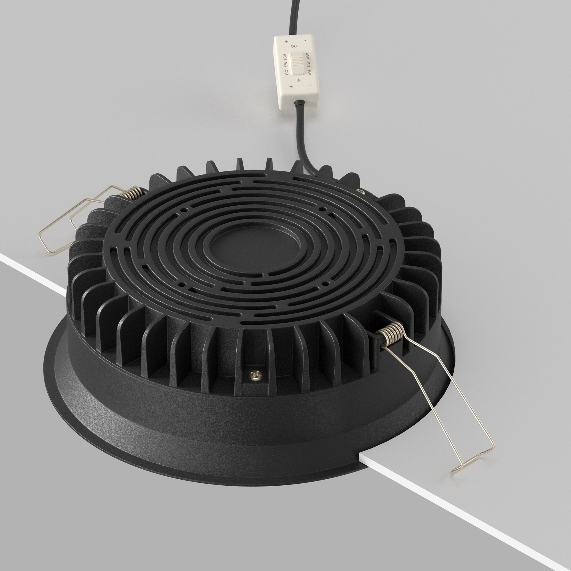 Материал арматуры — алюминий и пластик. Организация основного освещения в интерьере. Высокий коэффициент цветопередачи >90. Качественное отображение цветов. Утопленный матовый рассеиватель. Переключатель цветовой температуры. Повышенная степень пылевлагозащиты IP 44.