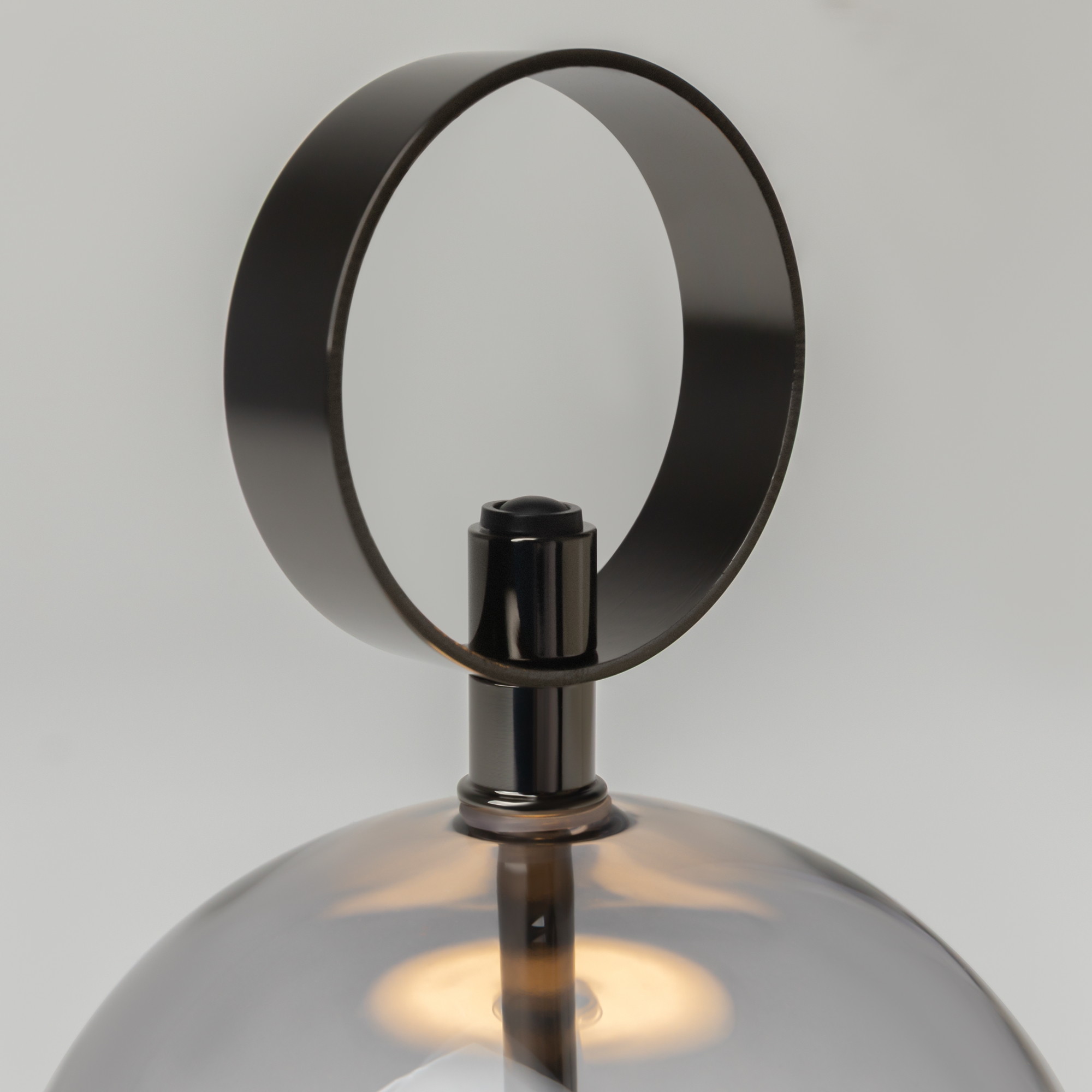 Серия включает подвесной светильник, бра, напольный и портативную модели. Стеклянные плафоны с зеркальным градиентом, черная глянцевая арматура из металла. LED-источник (3000K) скрыт матовым рассеивателем. Конструктивные особенности: магнитные потолочные чаши у подвесов и магнитное основание у бра обеспечивают монтаж без видимого крепежа. Напольный и аккумуляторный светильники диммируются при длительном удержании кнопки. Серия отмечена премиями Red Dot и A’design за инновационный дизайн.