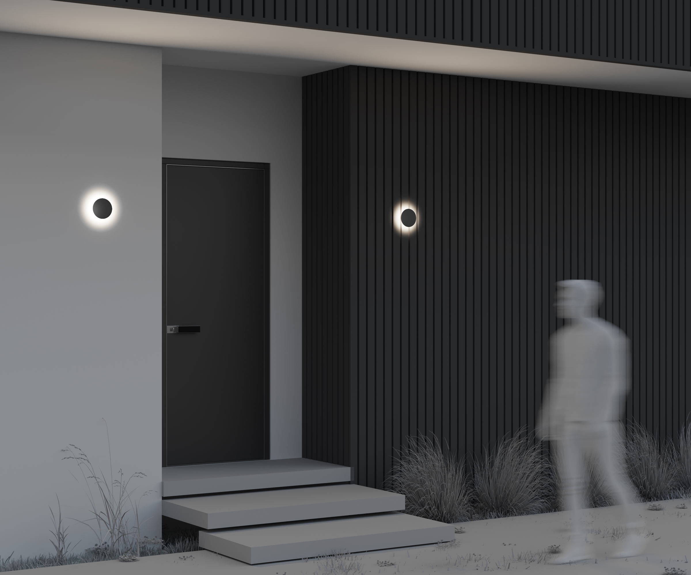 Материал корпуса — металл, цвет — графит. Высокий уровень защиты от пыли и влаги IP 65. Устойчивость к коррозии и перепадам температур. LED-источник света с нейтральной цветовой температурой 3000 К. Серия включает настенные и ландшафтные светильники.
