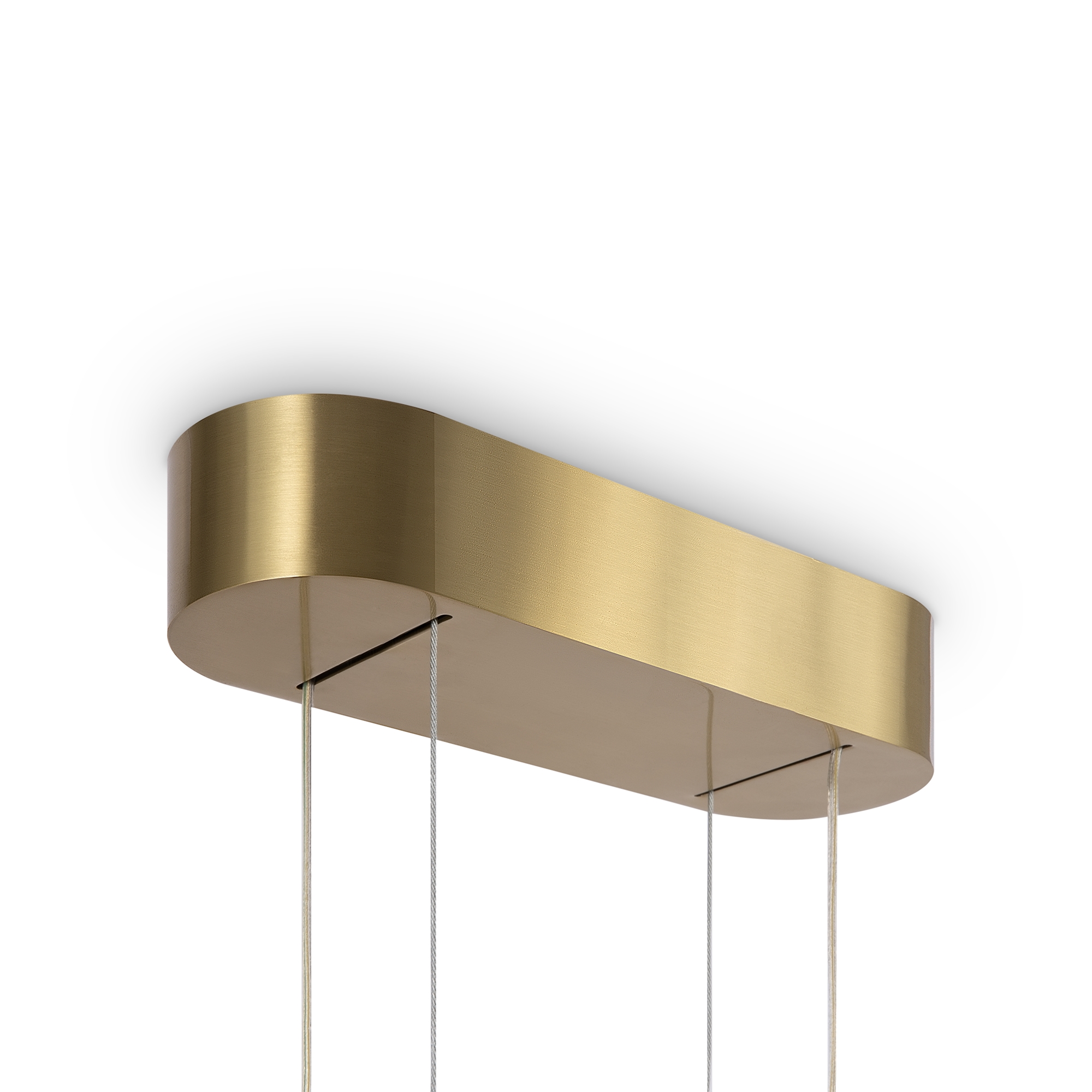 МатМатериал арматуры — металл, цвет — латунь. Декор — объемные прозрачные хрустальные элементы с чередующимся рисунком. LED источник света, цветовая температура — 3000К. Регулируемая длина тросов.