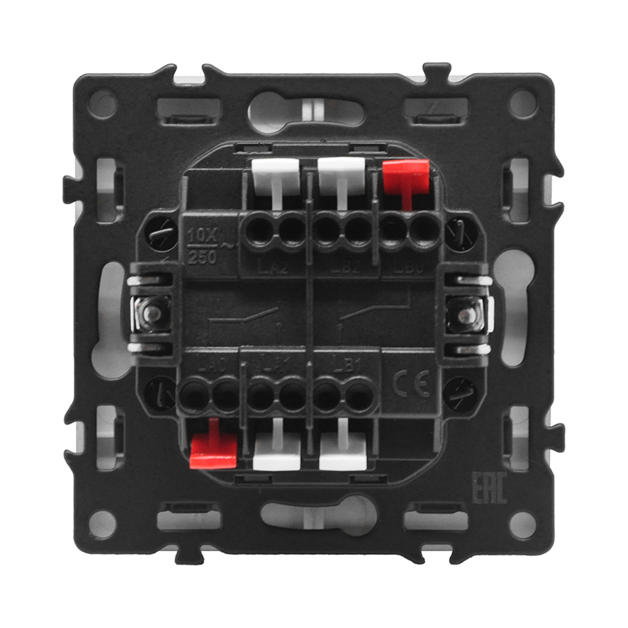 Двухклавишный проходной переключатель с LED-подсветкой