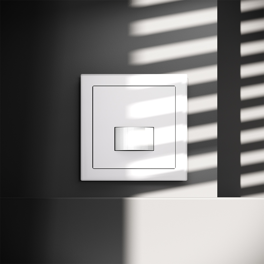 Место установки. Встраиваемый датчик движения Voltum — устройство для управления осветительными приборами. Помогает экономить электроэнергию. Корпус. Панель управления датчиком расположена под передней накладкой. Устройство монтируется в стандартный подрозетник и совместимо со всеми рамками серии S70 Voltum. Дизайн выполнен в единой фирменной стилистике. Основной материал корпуса — долговечный и негорючий поликарбонат. Конструктивные особенности. Датчик автоматически включает освещение при обнаружении движения в зоне охвата (расстояние — до 9 метров, угол — до 120 градусов). Порог срабатывания регулируется в зависимости от уровня освещенности (от 3 до 2000 люкс) поворотным реле со значком «солнце» (находится под накладкой механизма), которое может перевести датчик в режим работы только в вечернее время, когда отсутствует солнечный свет. Управление временем отключения питания после выхода объекта из зоны обнаружения (от 10 секунд до 7 минут) осуществляется через поворотное реле со значком «часы» (также находится под накладкой). Датчик совместим с любыми видами подключаемых ламп (до 500 Вт для ламп накаливания, до 200 Вт для LED-источников). На корпусе предусмотрена кнопка «ON», позволяющая включить или отключить постоянную нагрузку.