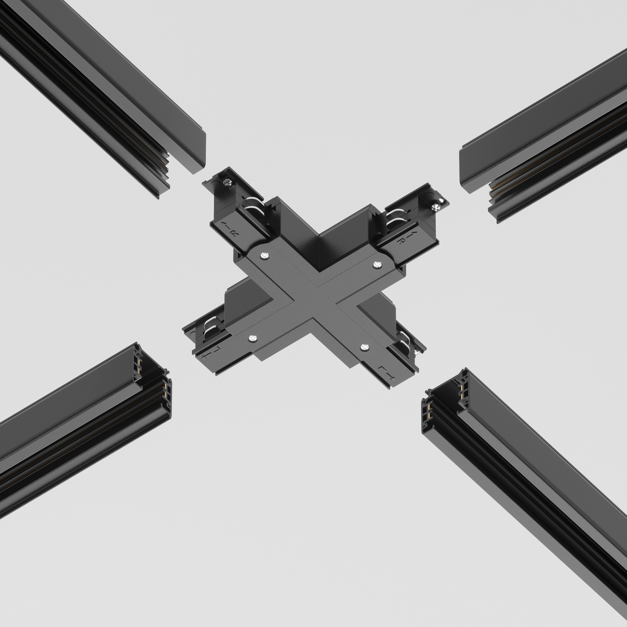 Коннектор Х-образный Trinity черный Комплектующие для систем освещения с токоведущими элементами Technical TRA005CX-31B