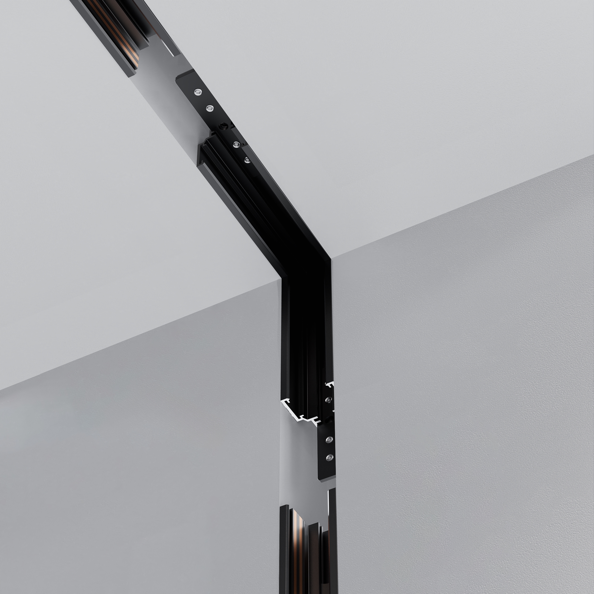 Комплектующие для низковольтной магнитной трековой системы Exility в черном и белом цветах. Разнообразие аксессуаров позволяет собрать свою уникальную конструкцию для накладного монтажа, подвесного, встраиваемого под гипсокартон и встраиваемого в натяжные потолки.
