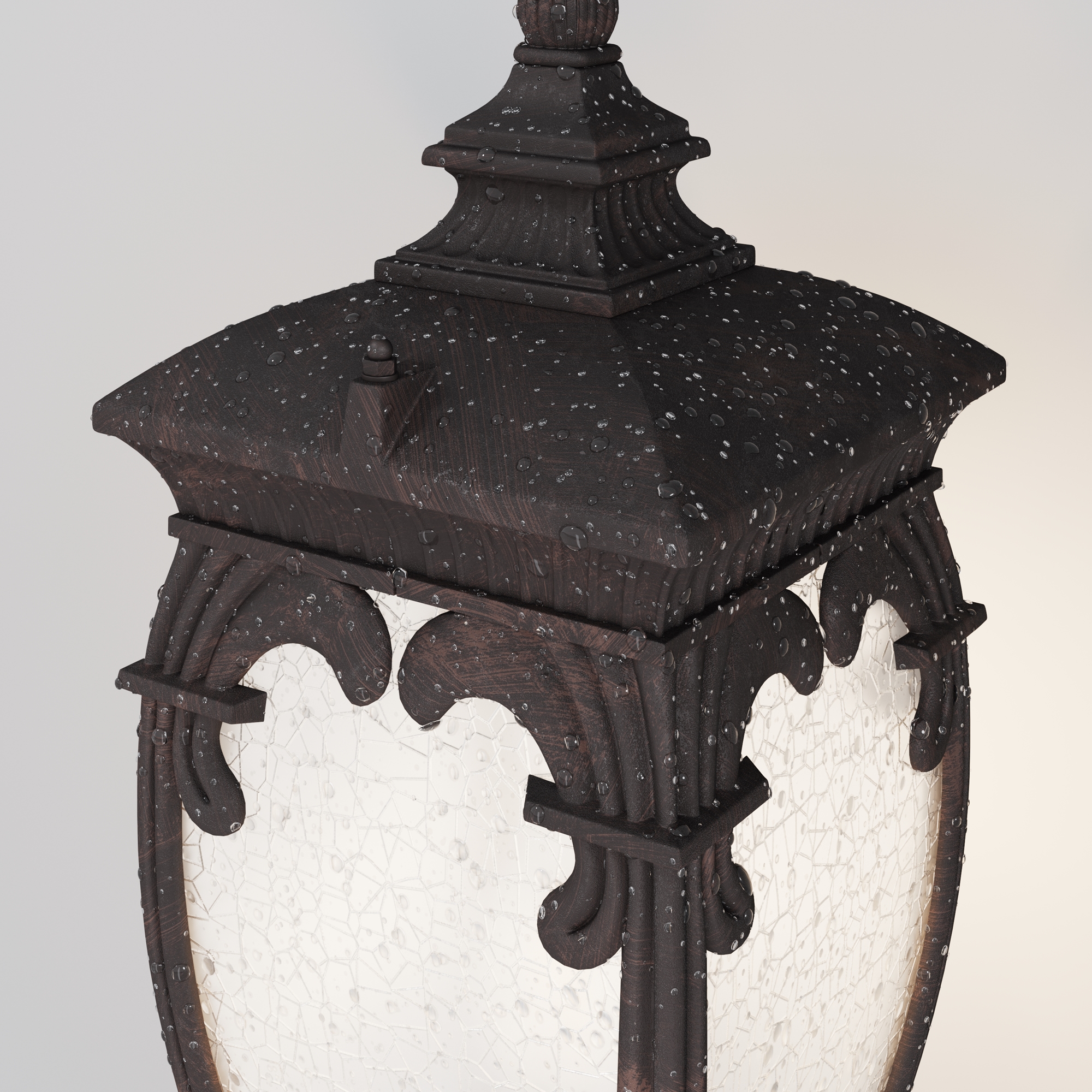 Серия представлена настенными, подвесными и напольными уличными светильниками для ламп Е27. Корпус моделей выполнен из алюминия и окрашен в два оттенка на выбор: черный с золотом или античная бронза. Светильник защищен от коррозии и перепадов температур. Декоративная технология обработки стекла PULEGOSO создает эффект пузырьков воздуха внутри плафона.