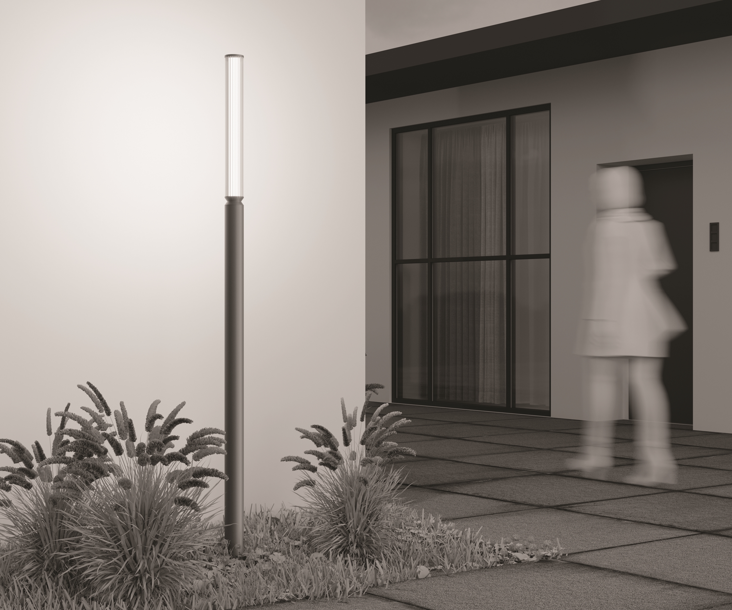 Корпус — алюминий, цвета — черный, коричневый. Двойной плафон из стекла. Внешний — прозрачный с линейным рельефным рисунком. Внутренний — белый глянцевый рассеиватель. Модели мощностью от 12Вт до 20Вт — предназначены для основного освещения. LED-источник света, цветовая температура — 3000К. Высокая степень защиты — IP65.