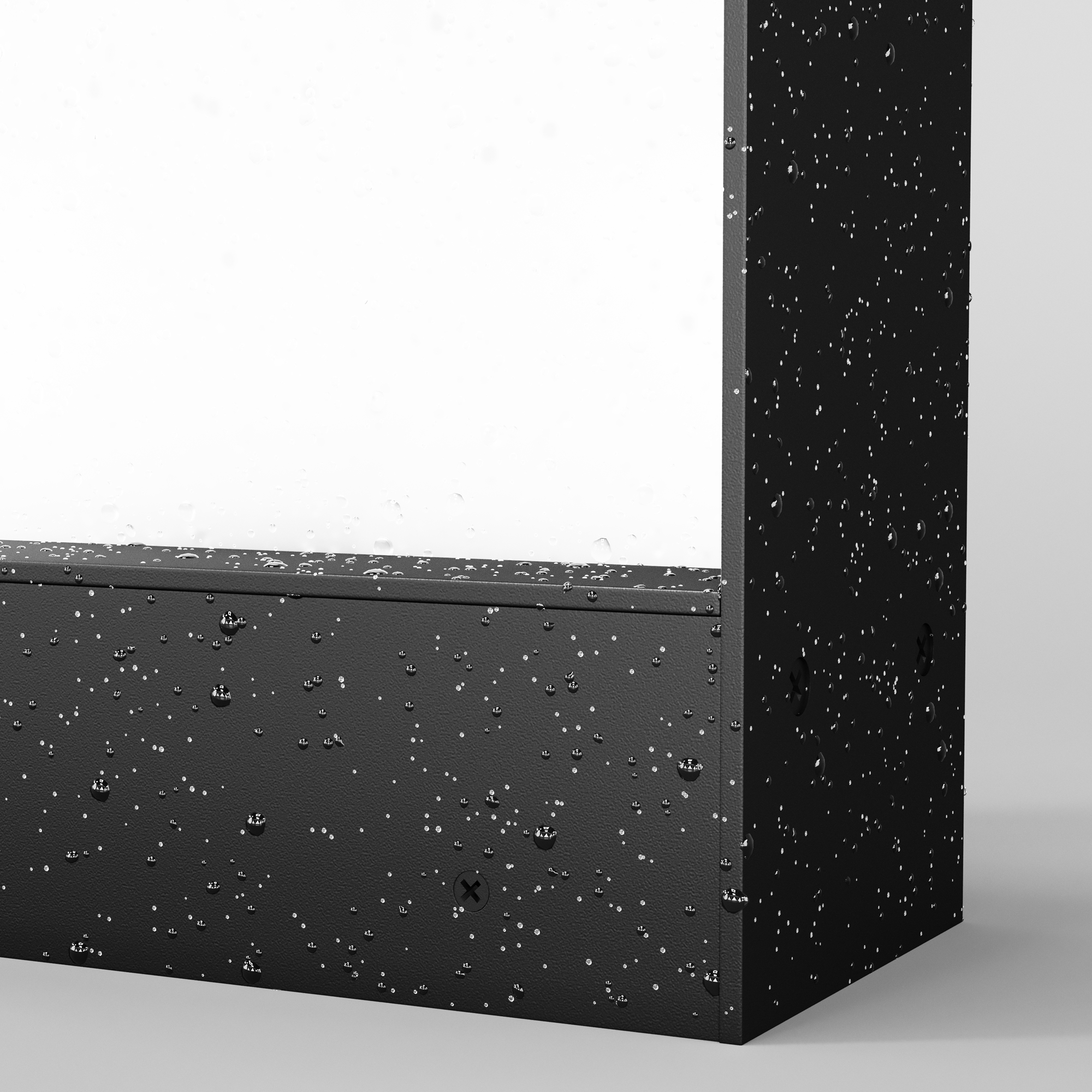 Материал корпуса — алюминий, цвет — графит. Рассеиватель из прочного матового стекла. LED-источник света, цветовая температура — 3000К. Степень защиты — IP65. Подходят для основного освещения.