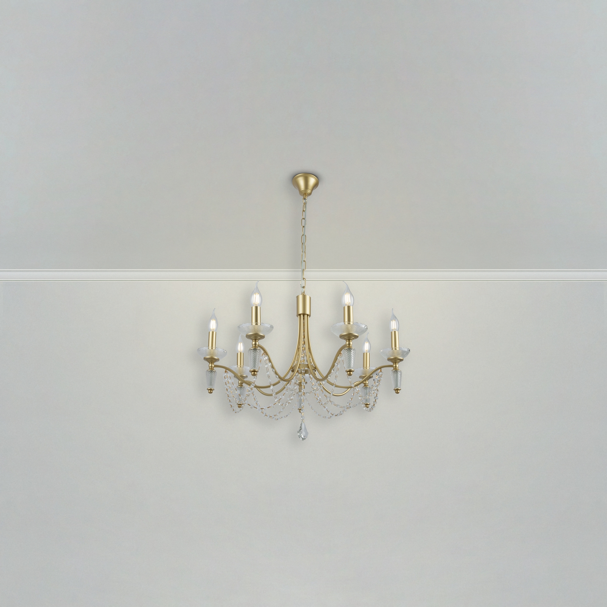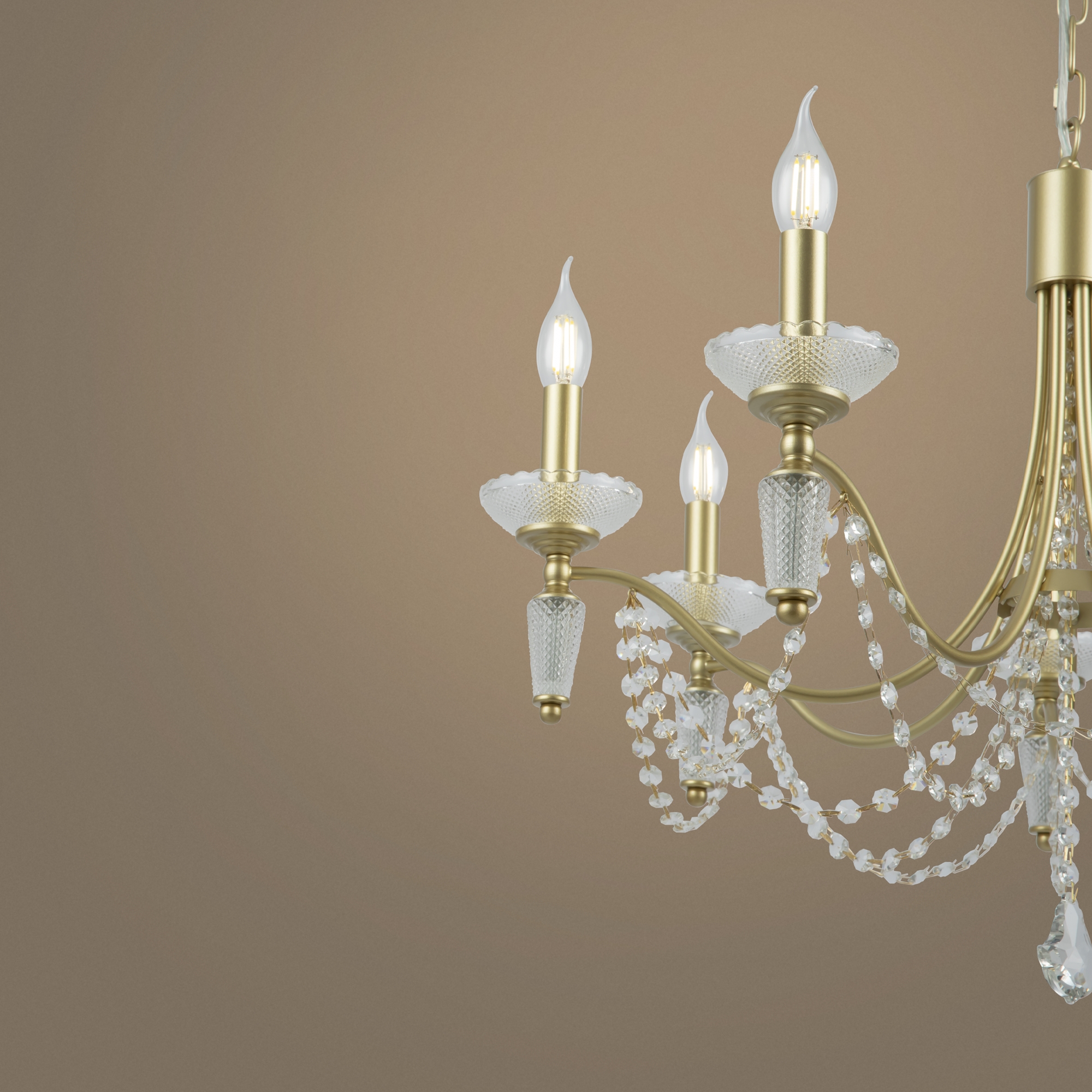 Элегантные светильники серии Zoe прекрасно впишутся в классический интерьер в теплых тонах. Главное украшение серии — декоративные элементы из рифленого стекла, напоминающие маленьких балерин в воздушных пачках, кружащихся в переливах света. Хрустальные нити и крупная каплевидная подвеска по центру усиливают игру света и создают торжественное настроение. Серия включает люстры на 12, 7 и 5 рожков и бра. Прекрасным дополнением к серии Zoe станут лампочки VOLTEGA «свеча на ветру».