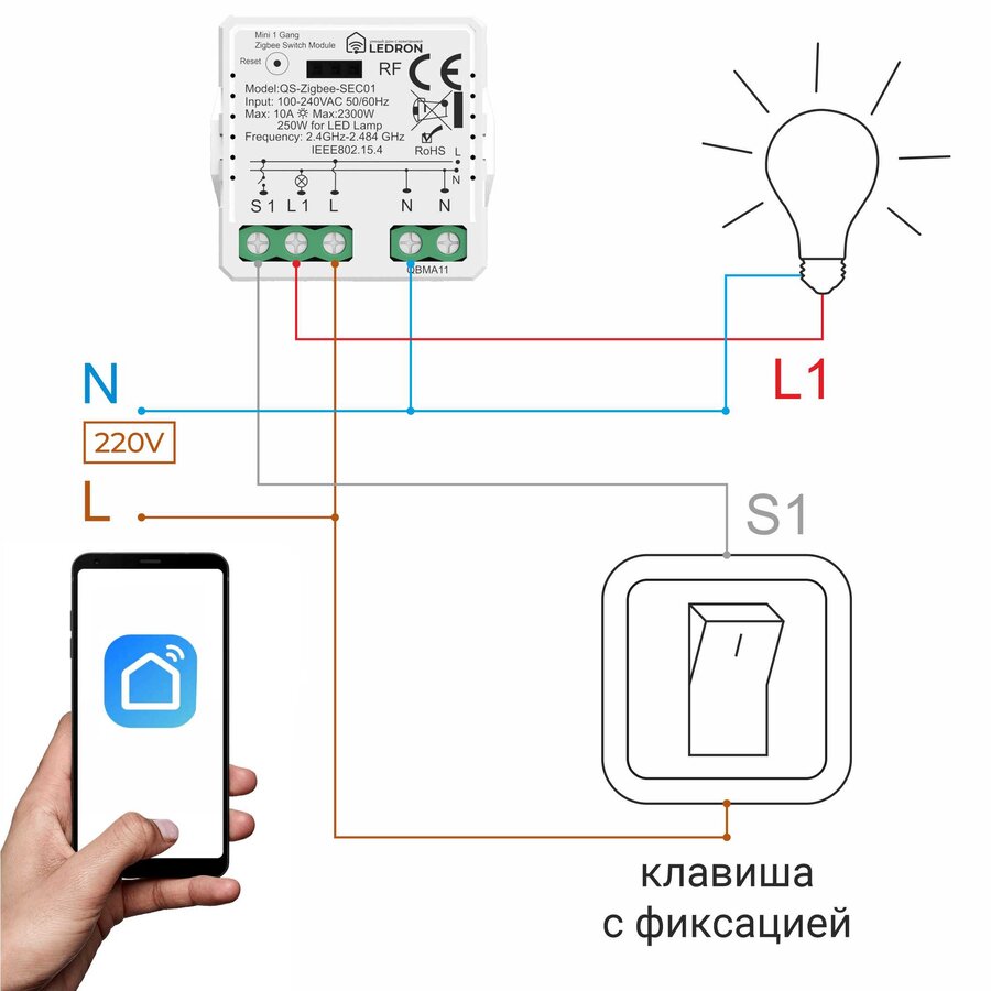 Модуль одноканальный QS-ZigbeeSEC01