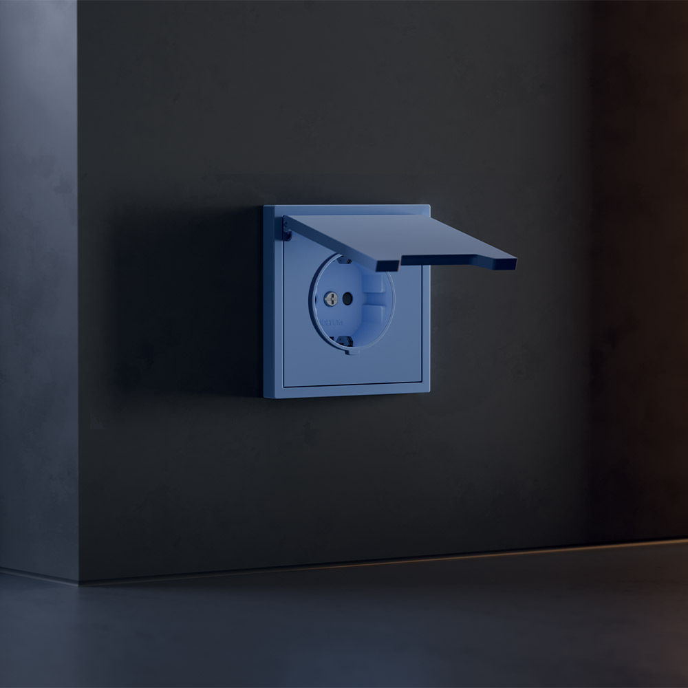 Накладка для розетки с заземлением, защитными шторками и крышкой, S70 (деним)