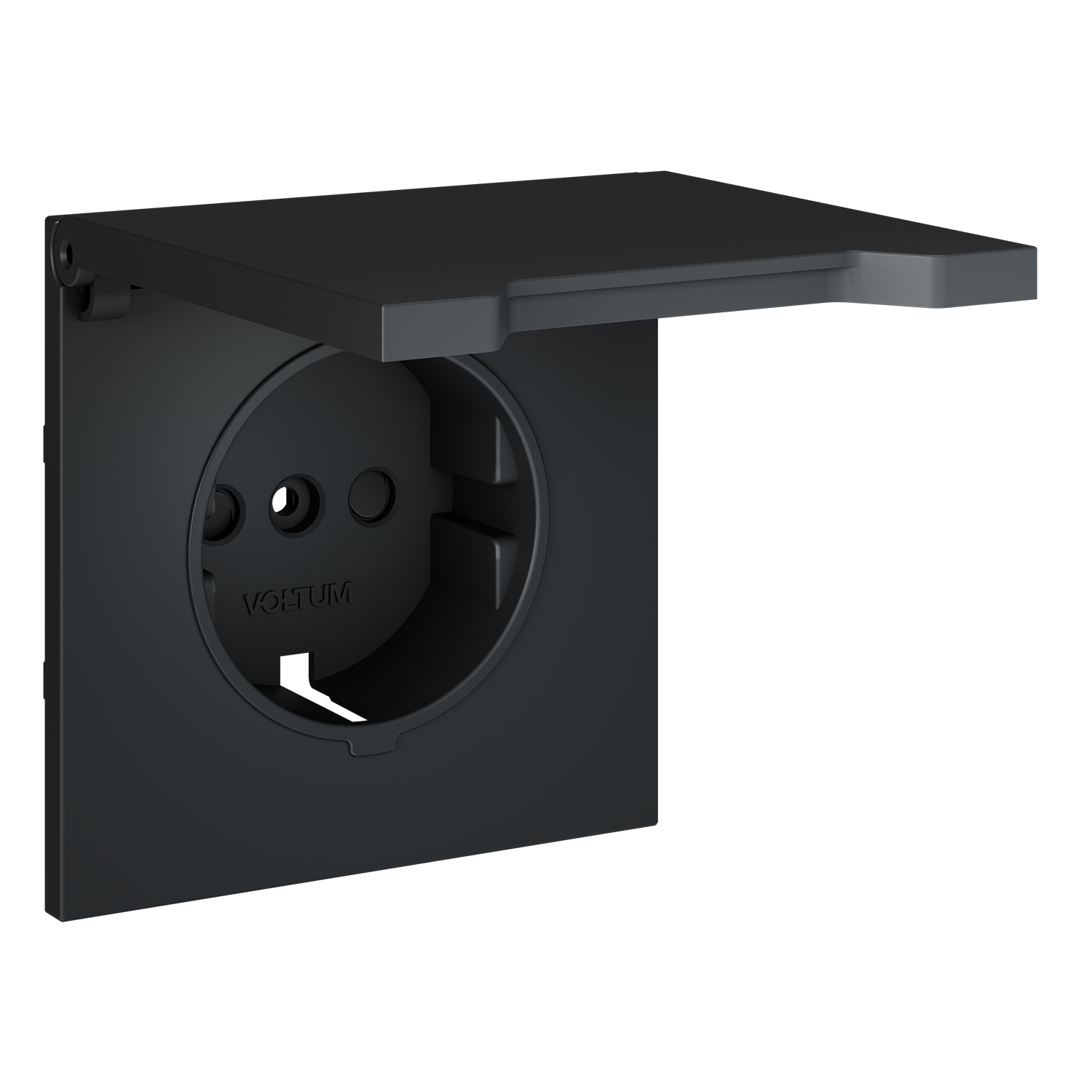Накладка для розетки с заземлением, защитными шторками и крышкой, S70 (графит)