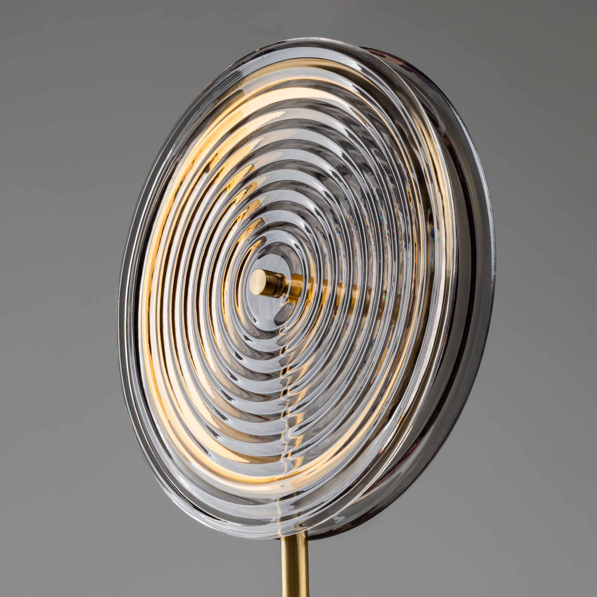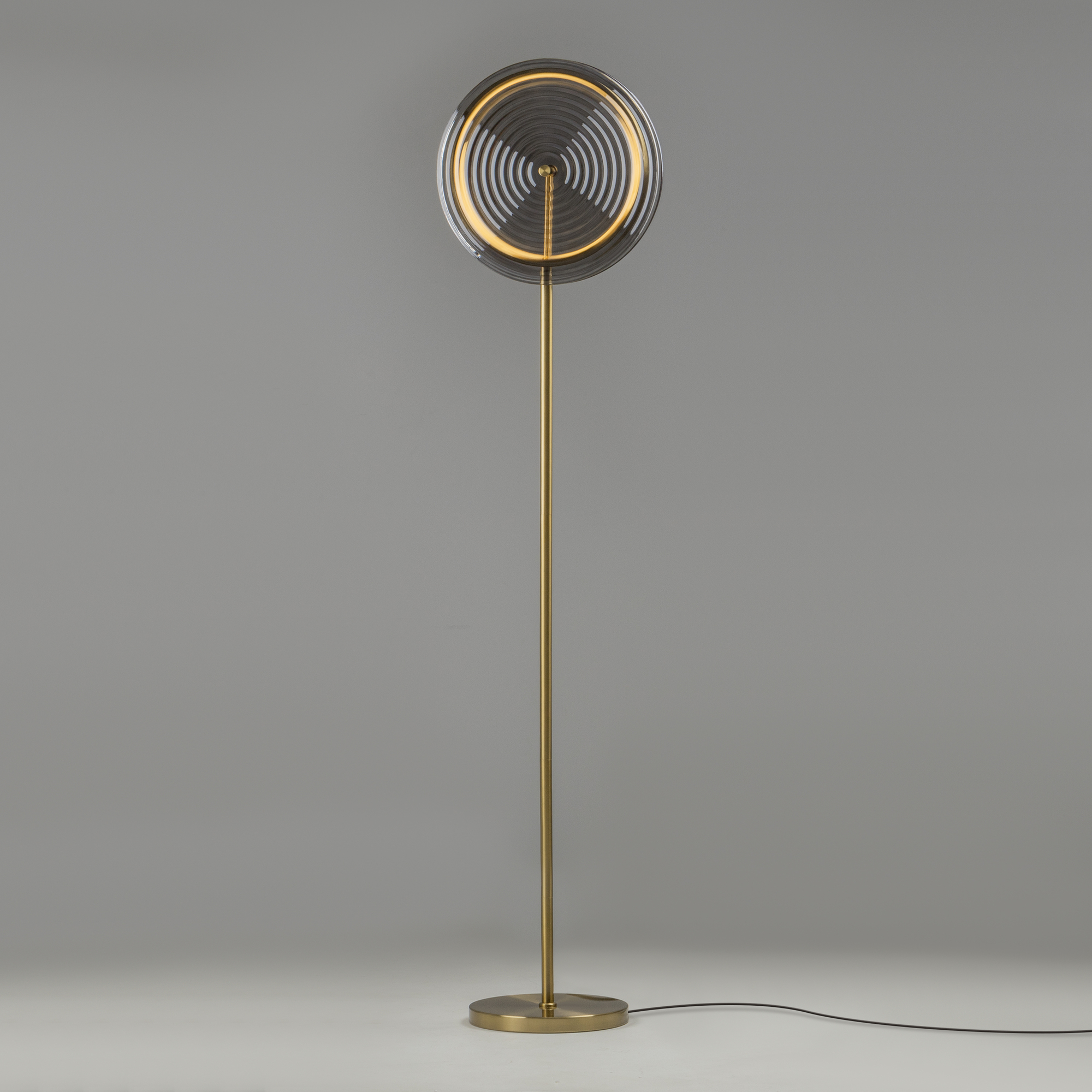 Арматура — металл. Цвет арматуры латунь. Плафоны из стекла в форме леденцов выполнены в четырех цветах: серый, зеленый, прозрачный и желто-оранжевый. Широкий спектр типов светильников: торшеры, настенные бра и подвесы. LED источник света. Цветовая температура 3000К.