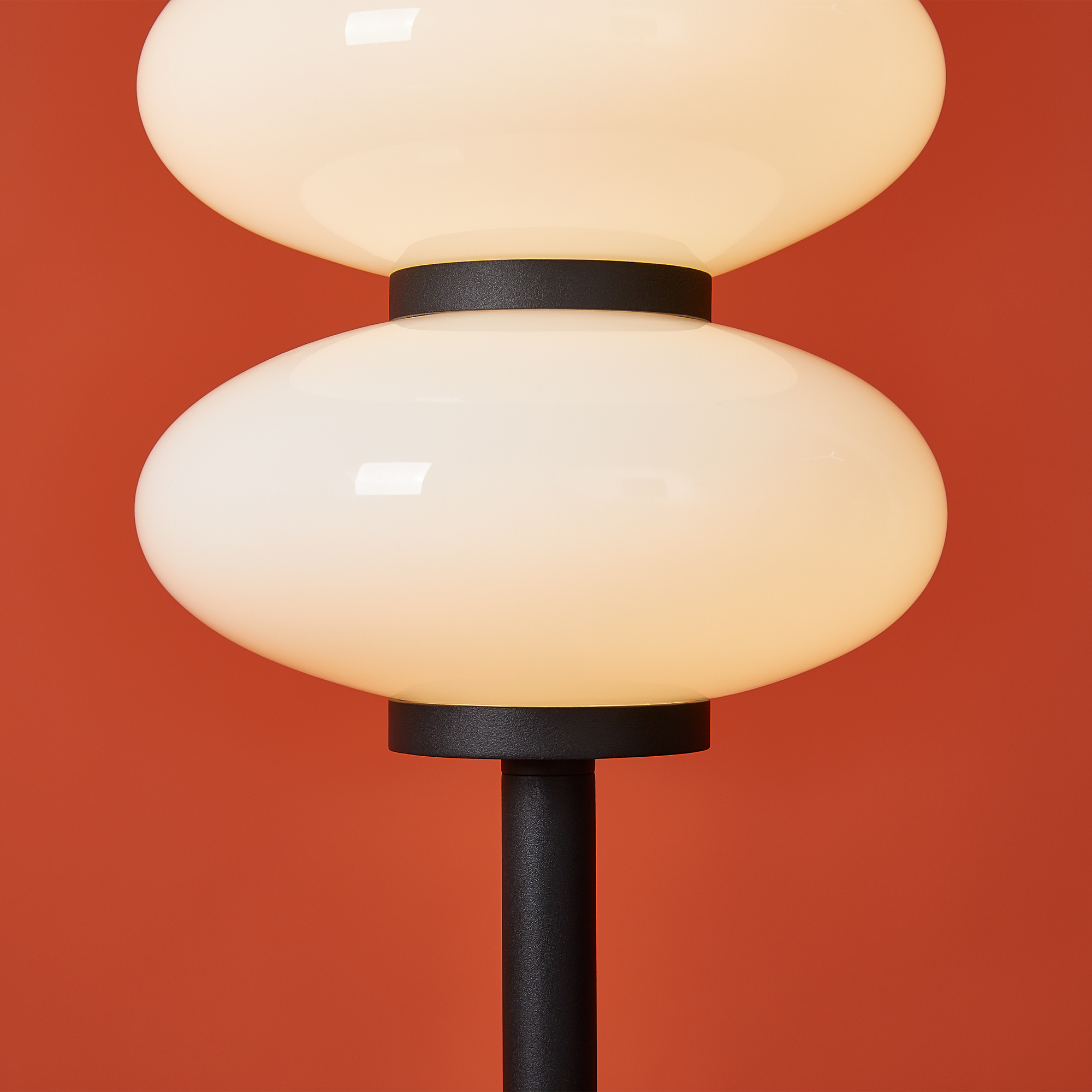 Материал арматуры — металл, цвет — черный. Напольный торшер оснащен LED-источником света. Цветовая температура 3000К.Индекс цветопередачи >82. Глянцевые белые стеклянные плафоны. Торшер высотой 1 метр. Сочетание ретро-дизайна и современных технологий: настенный светильник оснащен сенсорным управлением, а контрастное сочетание черной арматуры и белого стекла создает эффектную игру света.