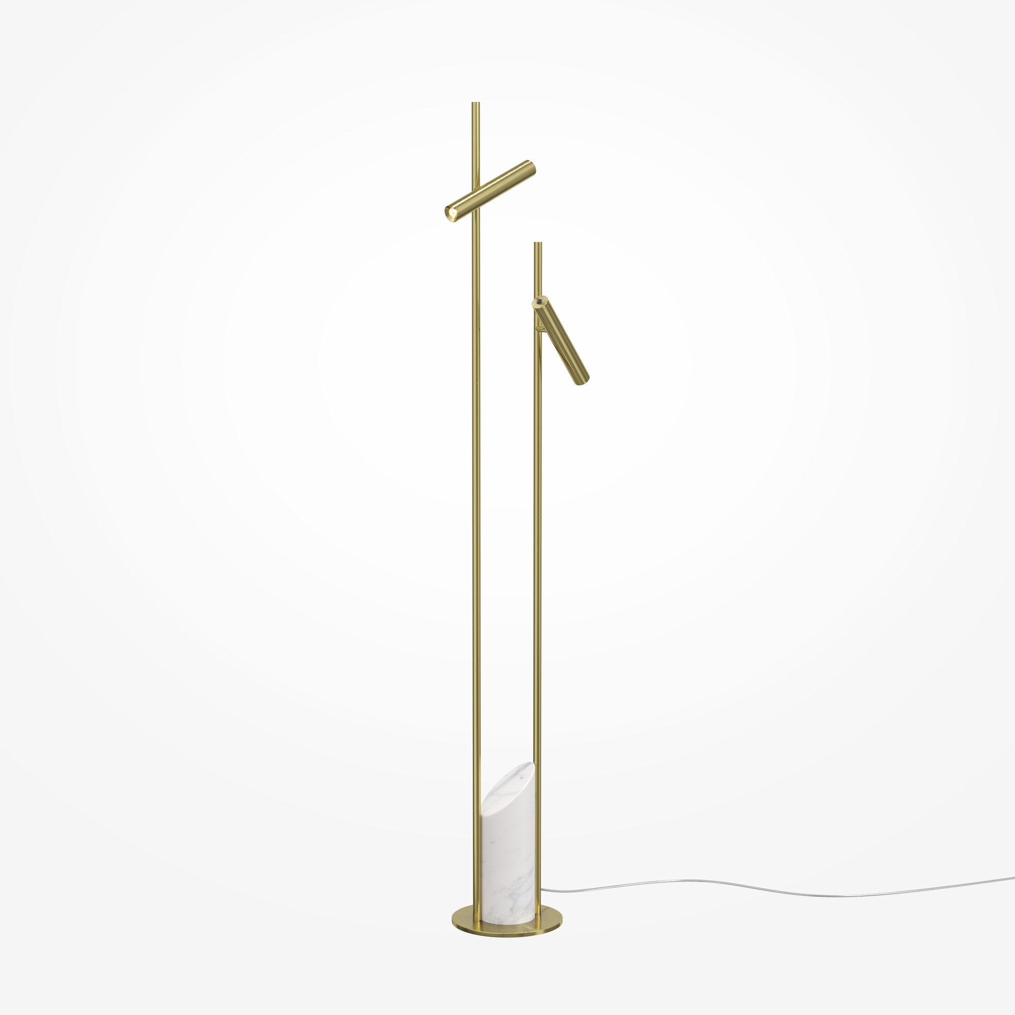 В основе дизайна — эстетика ар деко. Массивное основание из натурального мрамора с уникальным рисунком. Материал арматуры: металл. Серия представлена в двух цветовых решениях: чёрная арматура с антибликовым покрытием и серый мрамор; или арматура в цвете сатинированной латуни с белым мрамором. Два независимых поворотных спота с углом вращения 180° по горизонтали и 90°. Свет LED-источника (3000К) можно легко и точно направить. Продуманная эргономика – кнопки включения установлены на каждом споте.