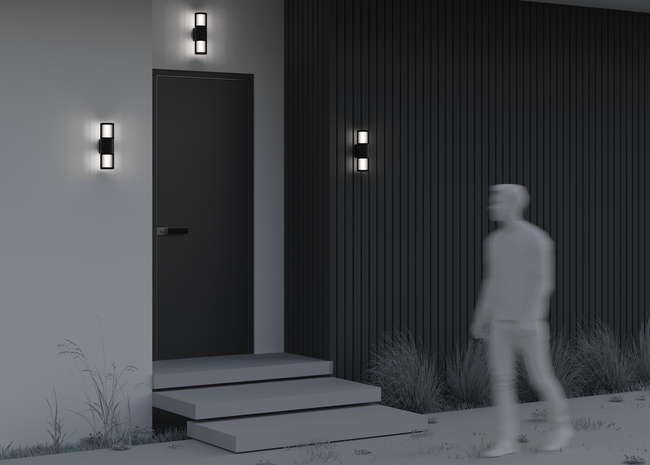 Материал арматуры — алюминий, цвет — графит. Источник света — лампа с цоколем Е27. Повышенная степень защиты от пыли и влаги IP65 у ландшафтной модели и IP54 у настенных светильников. Стильное обрамление рассеивателя решеткой из алюминия.