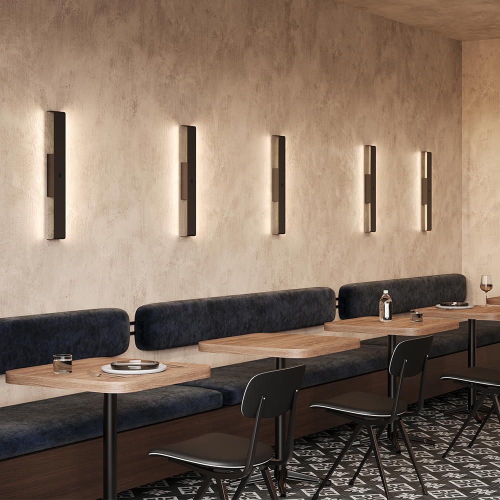 Алюминиевая арматура черного цвета с минимальным отступом от стены 45 мм. Три размера светильников, могут быть размещены как вертикально, так и горизонтально. LED-источник с трехступенчатым переключением температуры света 2700-3000-4000К и высоким CRI 90. Угол рассеивания 110°. Сенсорный переключатель на корпусе с функцией диммирования. Создают эффект переотраженного света на стене. Предназначены для современного интерьера, обеспечивая как функциональное освещение, так и декоративный эффект.