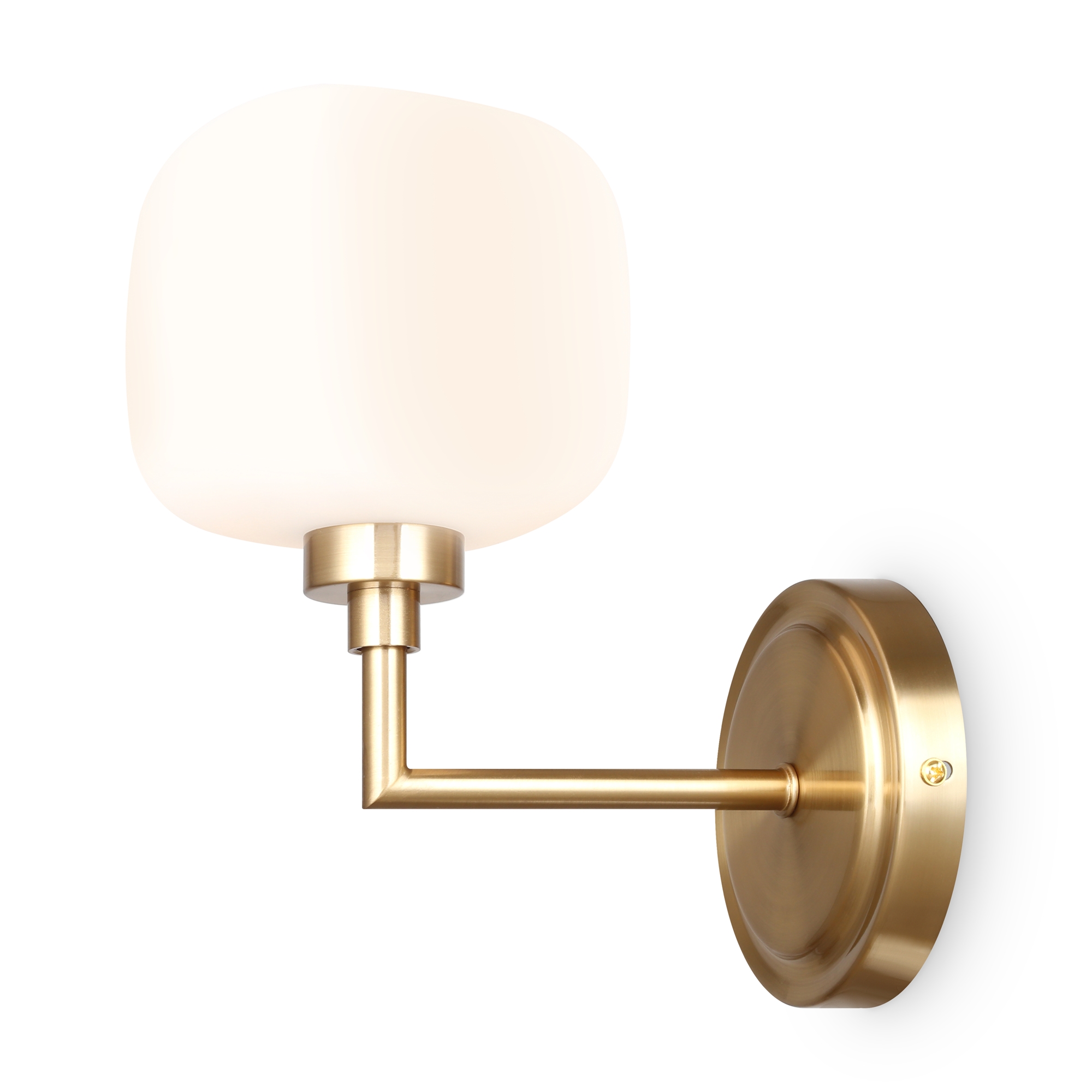 Металлическая графичная арматура цвета латунь. Плафоны из белого матового стекла в необычной форме округлых кубов — закреплены на разной по высоте комбинации. Мягкое равномерное освещение. Источником света служит лампа с цоколем G9.