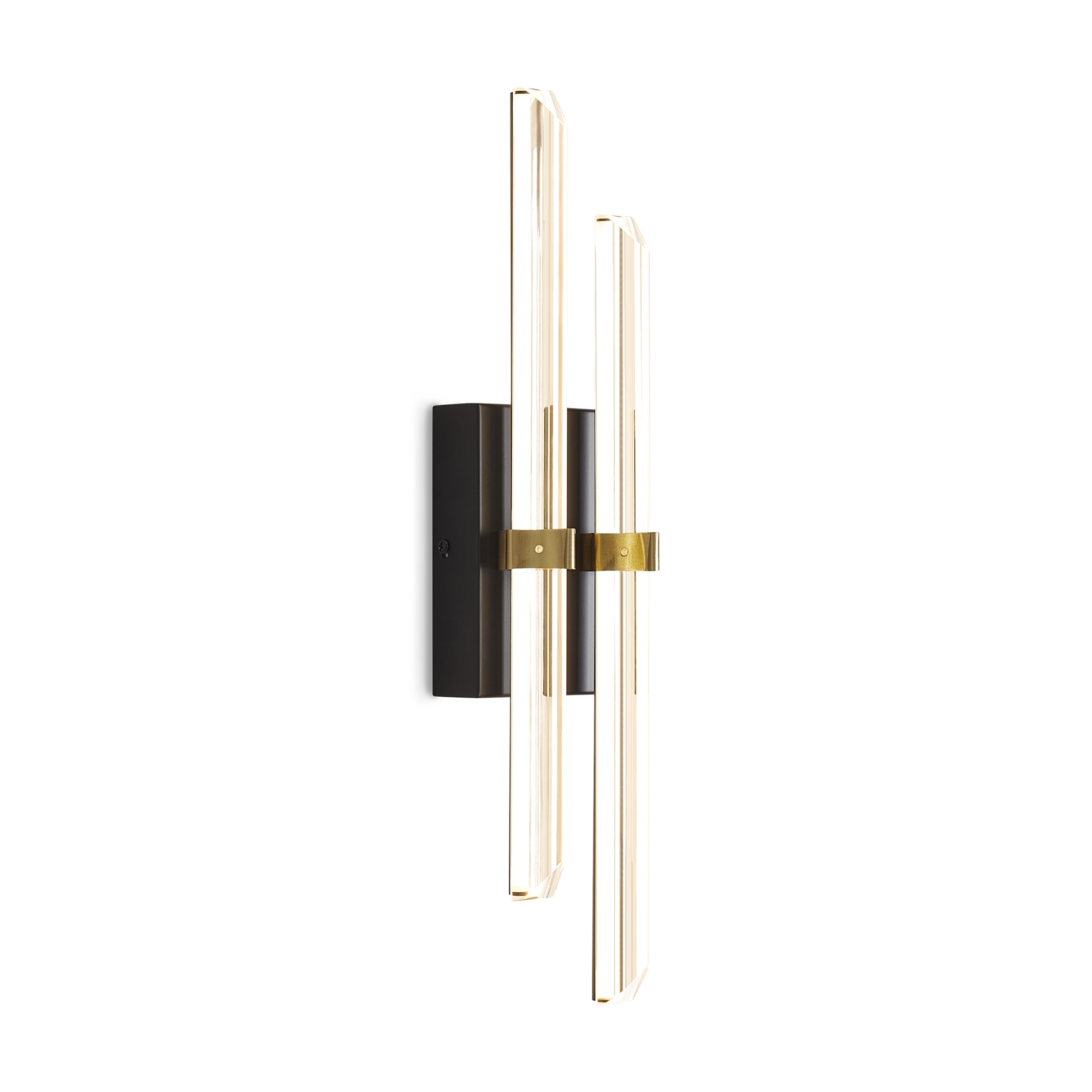 Материал арматуры — металл, цвет — черный и латунь. Все модели серии Brilliance оснащены LED-источником света. Цветовая температура 2700К. Прозрачные стеклянные рассеиватели. Регулируемая высота. Особенностью серии являются поворотные LED-трубки, позволяющие менять направление светового потока и создавать различные световые композиции.