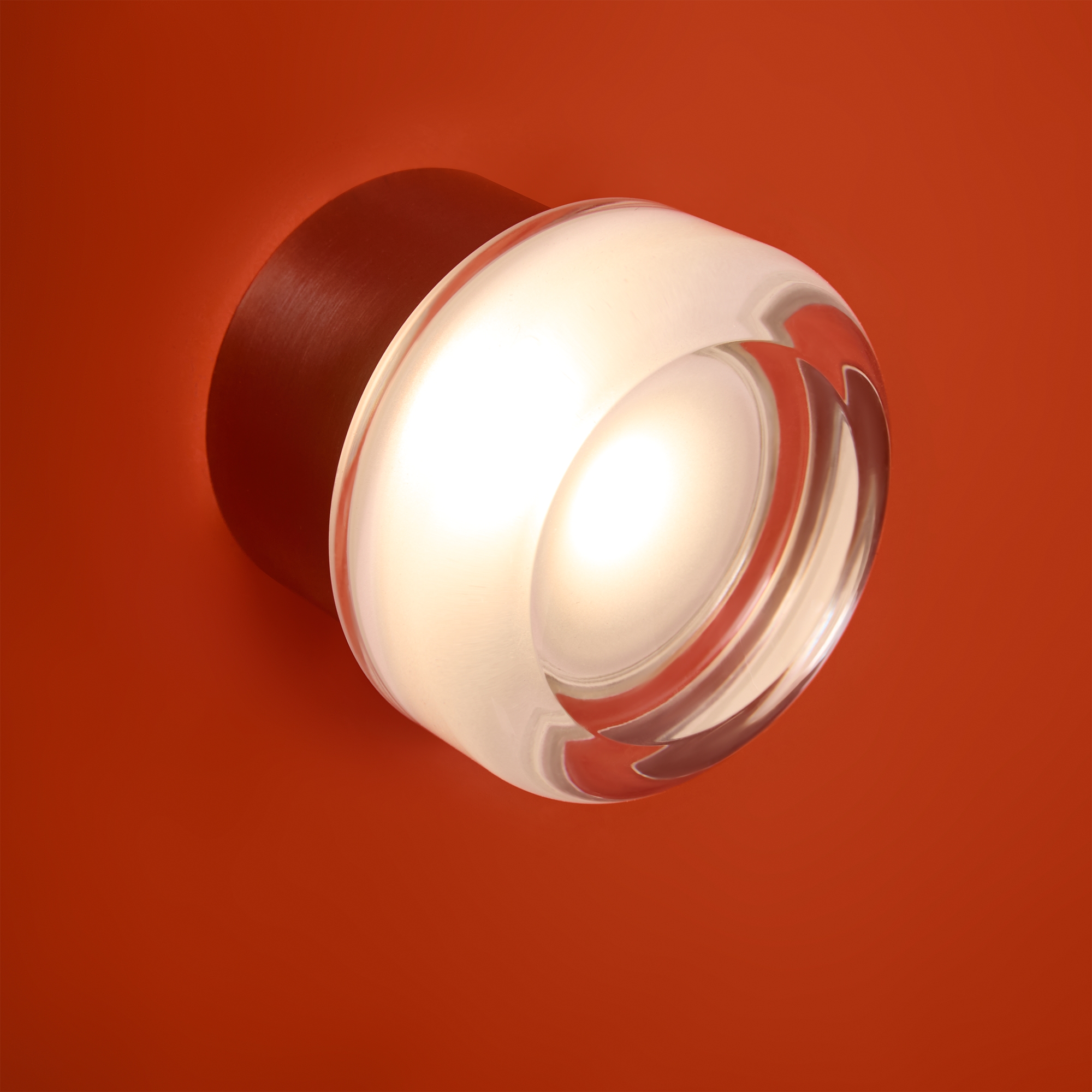 Металлическая арматура в цвете никель в трех рельефных основаниях. Плафоны, выполненные в приглушенно пшеничном и янтарном оттенках, доступны в двух размерах. LED источник света 2400К/2550К/3000K.