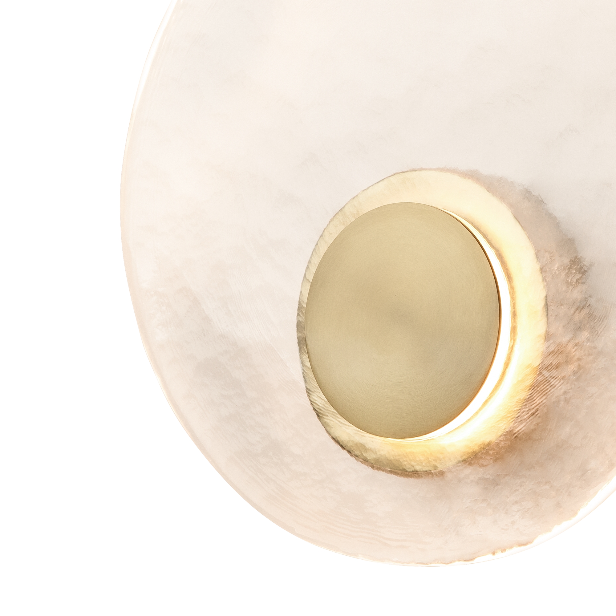 Материал арматуры — металл, цвет — латунь. Настенные светильники оснащены LED-источником света с цветовой температурой 2700К. Уникальное стекло ручного производства обеспечивает равномерное свечение всей поверхности плафона. Для достижения наилучшего светового эффекта рекомендуется использовать в сочетании с основными источниками света.