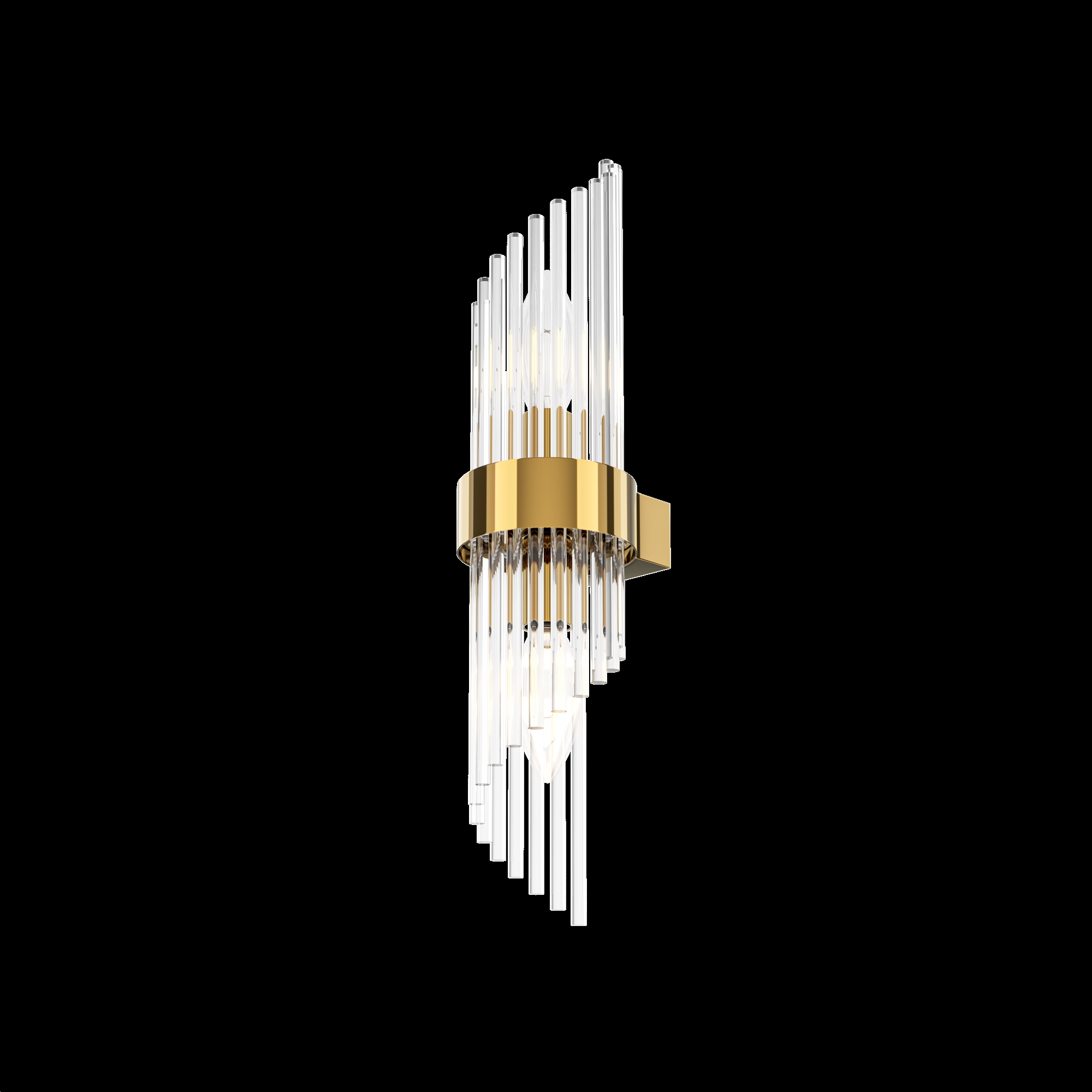 Материал арматуры — металл, цвет — золото. Декоративный элемент из прозрачного стекла в форме рельефных трубок. Цоколь Е14. Лампы в комплект не входят.