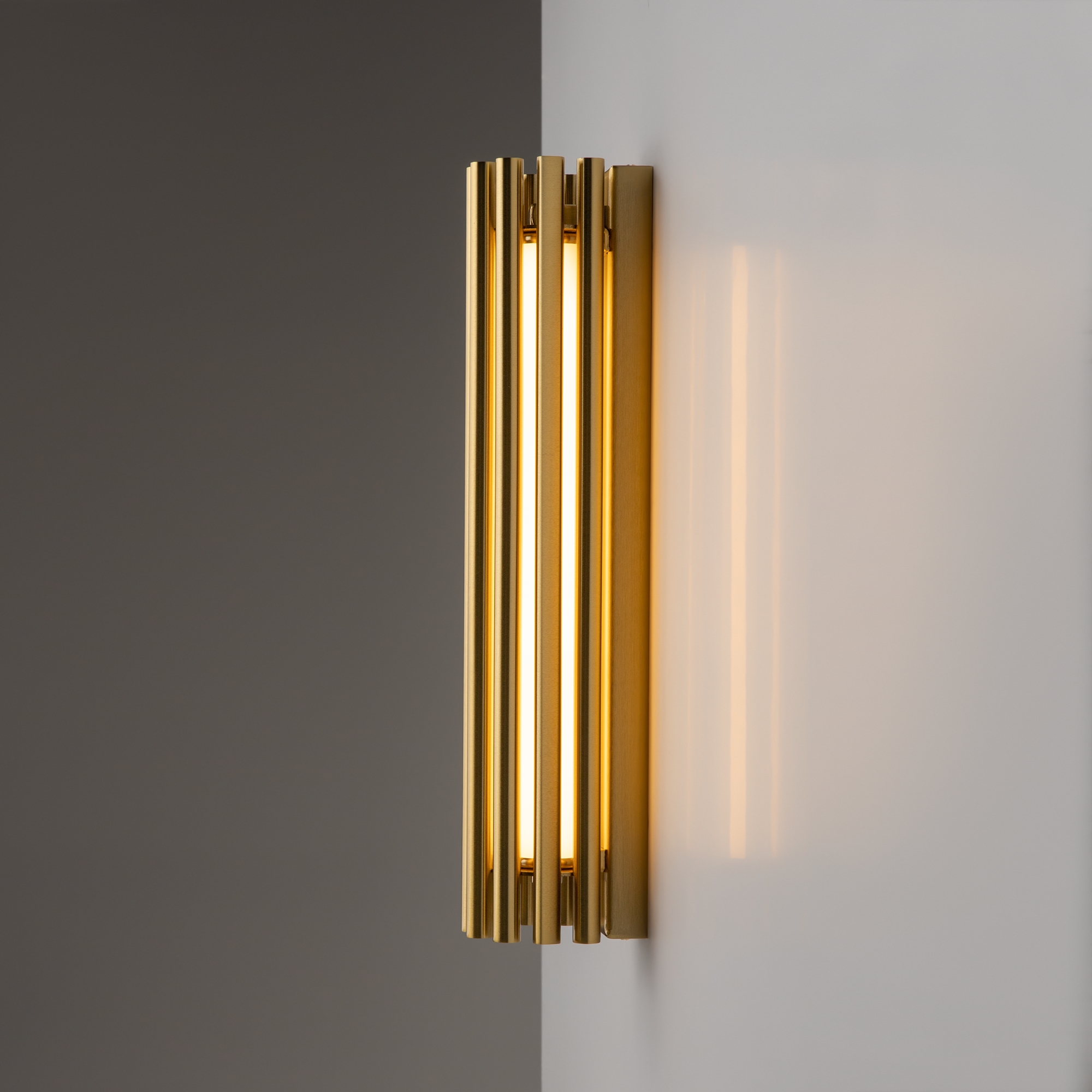 Алюминиевая арматура в двух оттенках: латунь, хром. Мягкий акриловый рассеиватель, плавное распределение света. Декор – металлические трубки в тон арматуре. LED-источник света, цветовая температура 3000К.