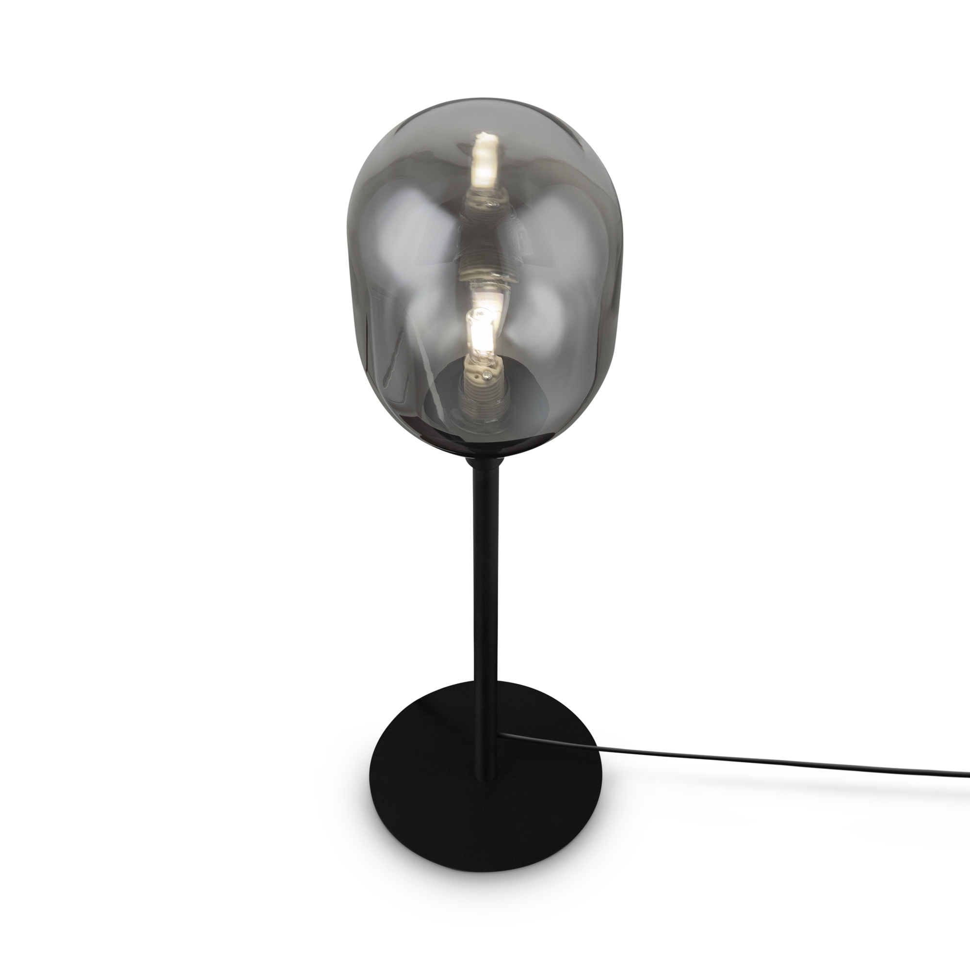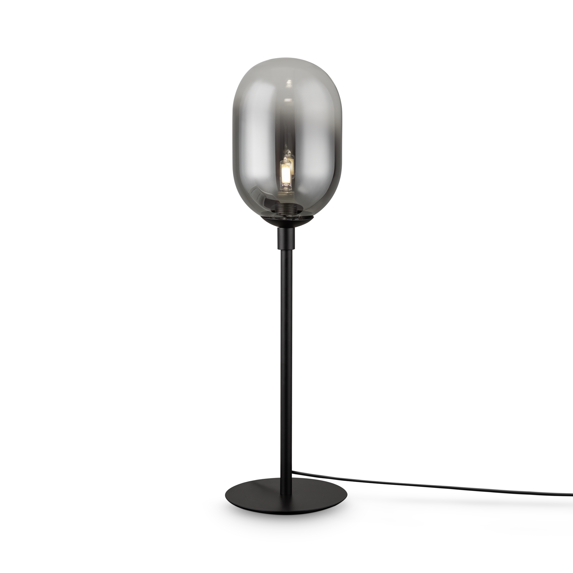 Арматура из металла матового черного цвета. Плафон из стекла с окрасом растяжка. Цвет дымчатый. Модификация — настенные, потолочные и настольные светильники. Источник света — лампа. Цоколь G9.