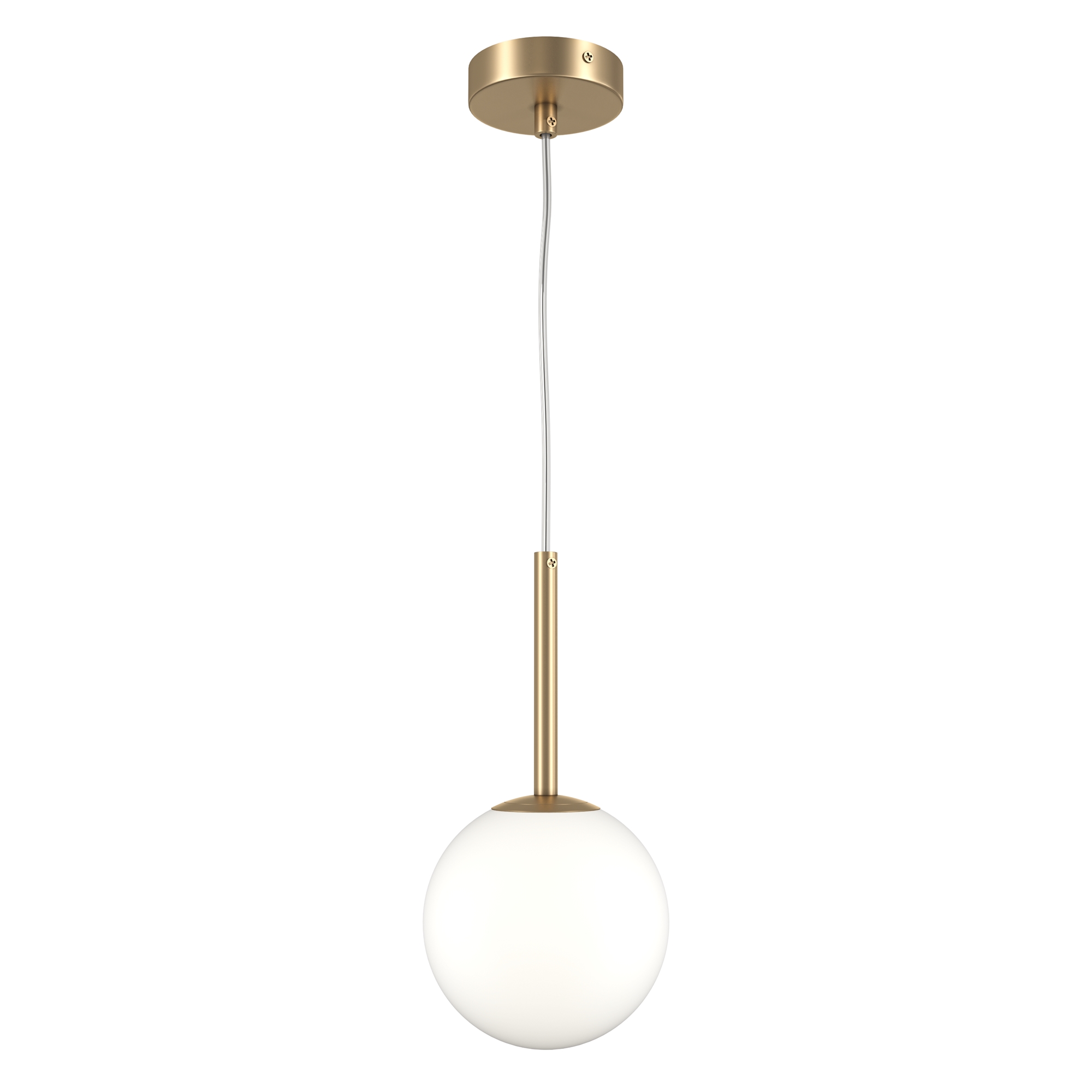 Материал арматуры – металл, цвет — золото, белый, черный. Округлые плафоны из матового белого стекла. Универсальные формы, минималистичный дизайн. Цоколь — E14. Лампы не входят в комплект. Регулируемая высота подвесных светильников.
