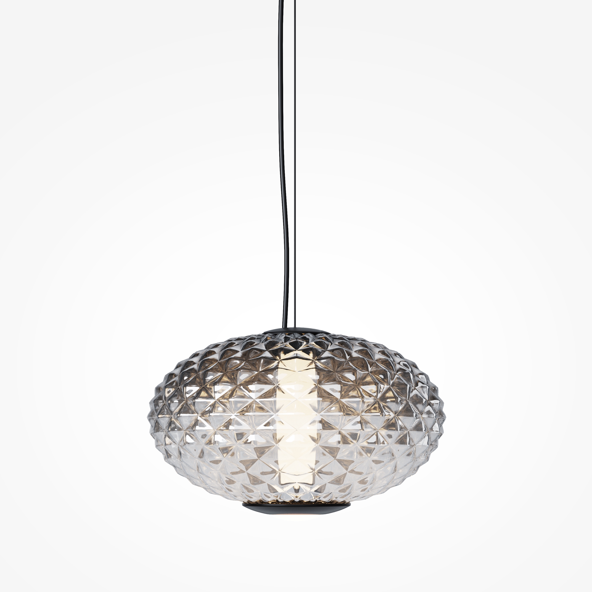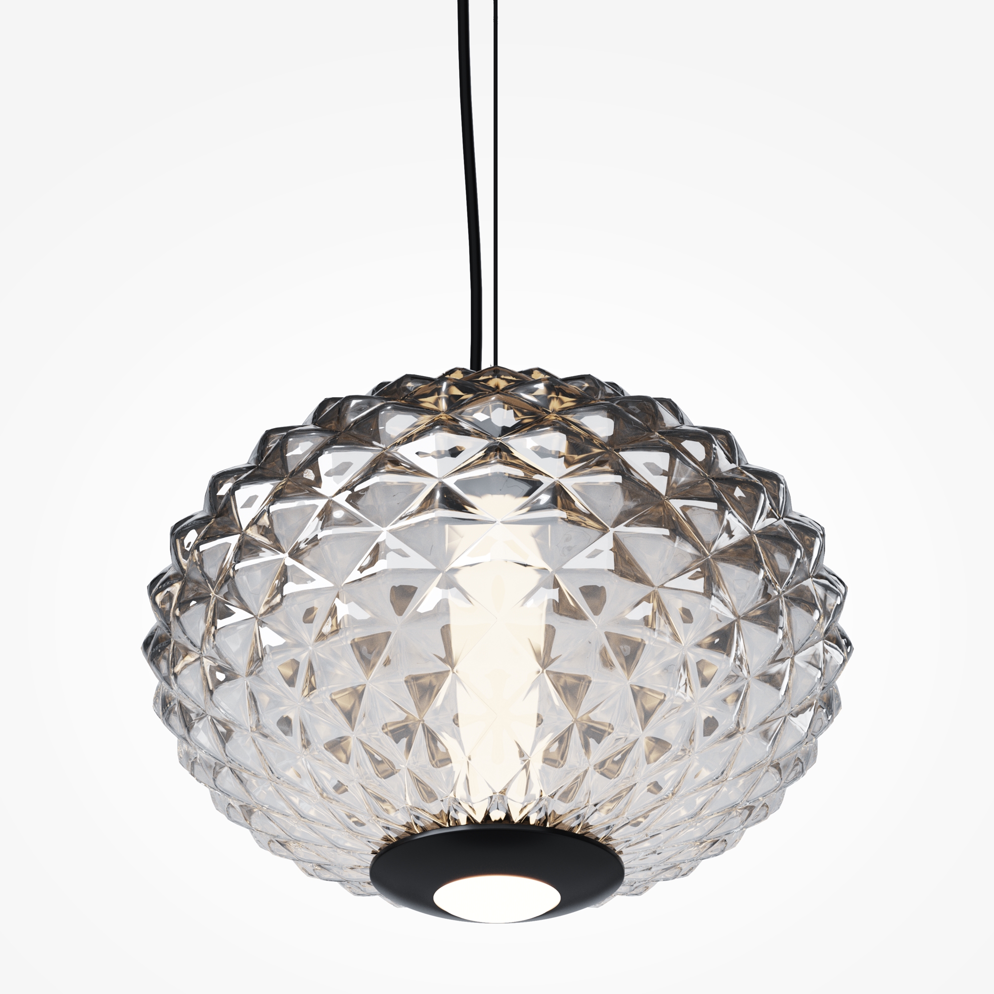 Подвесные светильники серии Bruma представлены в двух дизайнах: арматура глянцевый хром с белым стеклянным плафоном с нанесённым изнутри рельефом; черная арматура с антибликовым покрытием и черный плафон с наружным рельефом. Градиент на стекле от белого или черного к прозрачному. LED-источник света (3000K) имеет два направления: рассеянный и направленный. Подвесные светильники Bruma дополнят большинство современных интерьеров как в качестве одиночного акцента, так и в композиции друг с другом.