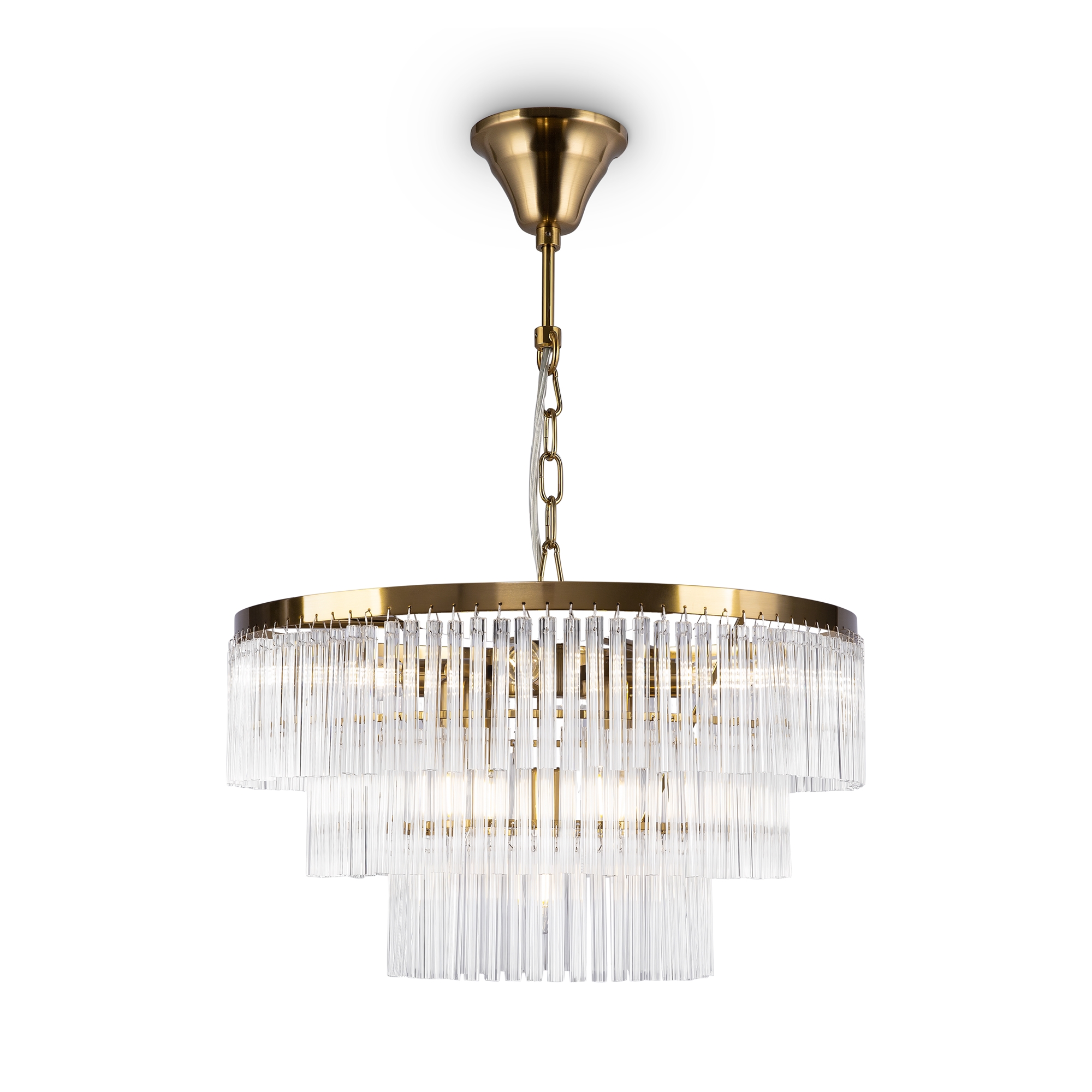 Металлическая арматура в двух оттенках: хром и латунь. Декоративные эле менты – прозрачные стеклянные трубки в форме звезд. Многоярусный декор обеспечивает игру света.