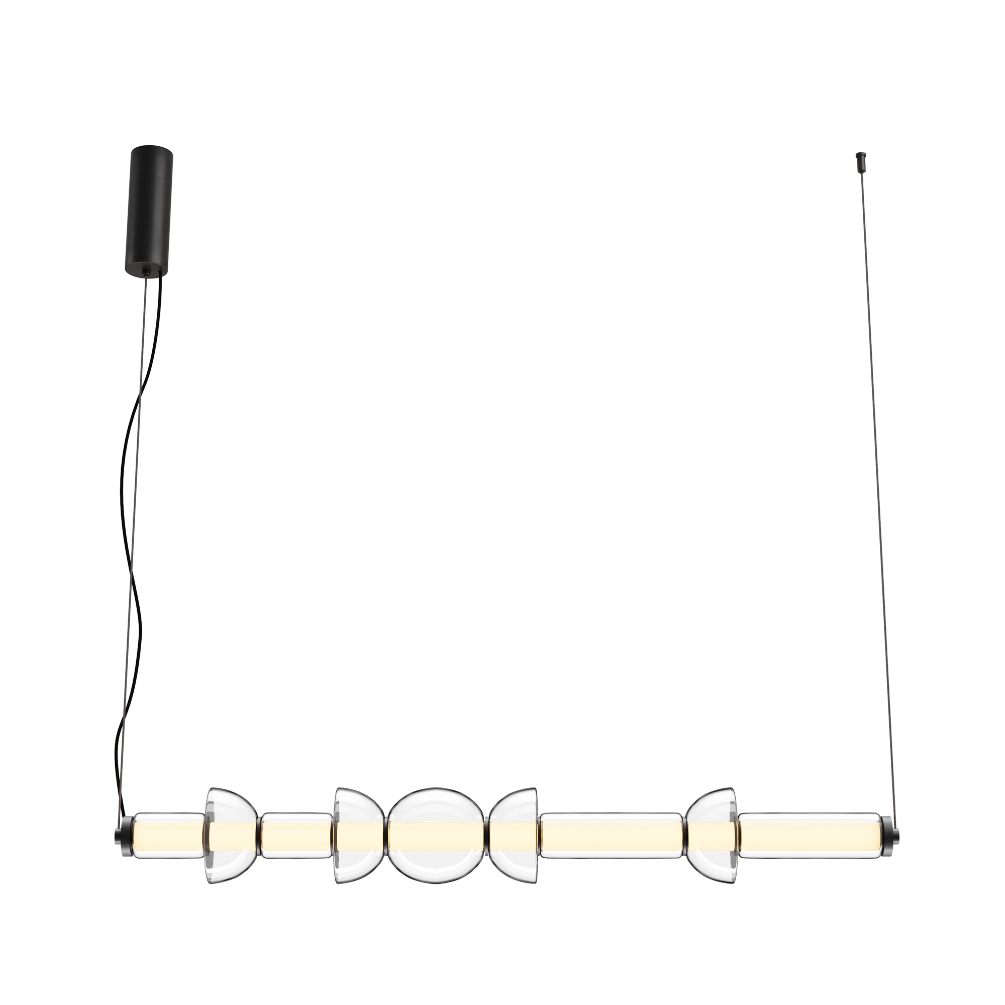Арматура — металл, цвет — черный, латунь. Плафоны — прозрачное стекло. Крепление 2в1 — горизонтальное и вертикальное. Конструкция и дизайн идеальны для составления композиций. Силуэты светильника напоминают образ фантастических космических кораблей. Световой поток — 4800 Лм, для основного освещения. LED-источник света. Цветовая температура — 3000К.