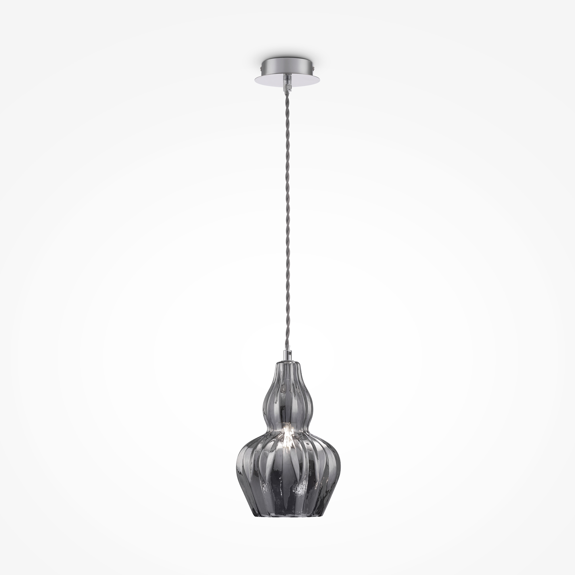Арматура — металл, оттенок — никель. Рельефный плафон выполнен из стекла. Оттенки плафона — прозрачный и голубой. Витой провод. Регулируемая высота.