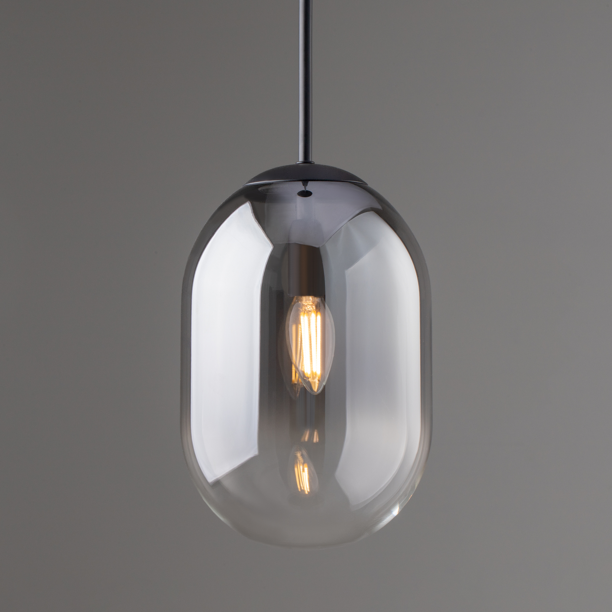 Арматура из металла матового черного цвета. Плафон из стекла с окрасом растяжка. Цвет дымчатый. Модификация — настенные, потолочные и настольные светильники. Источник света — лампа. Цоколь G9.