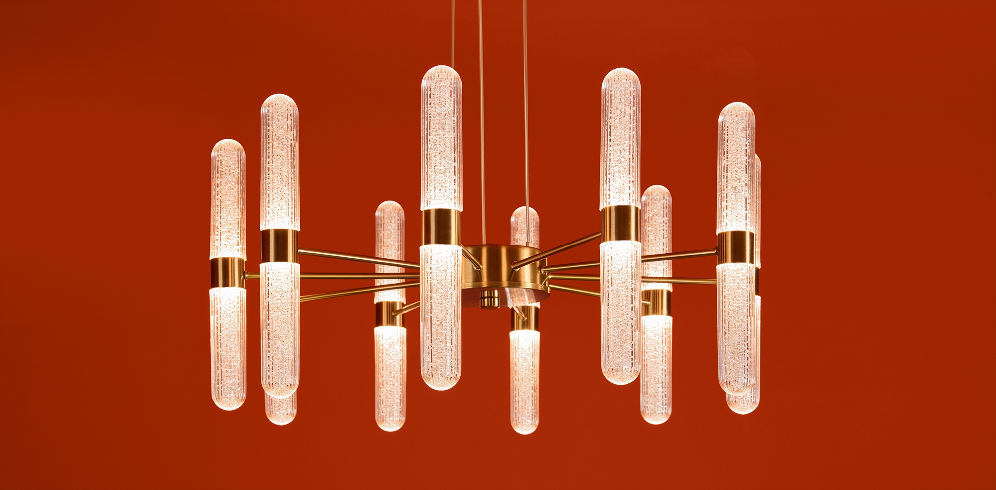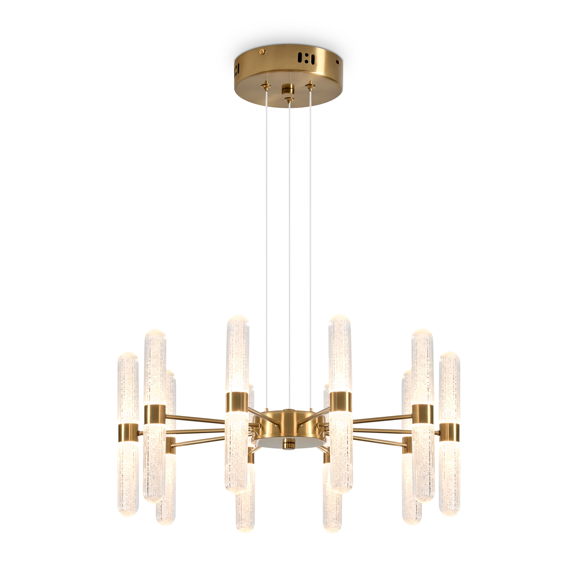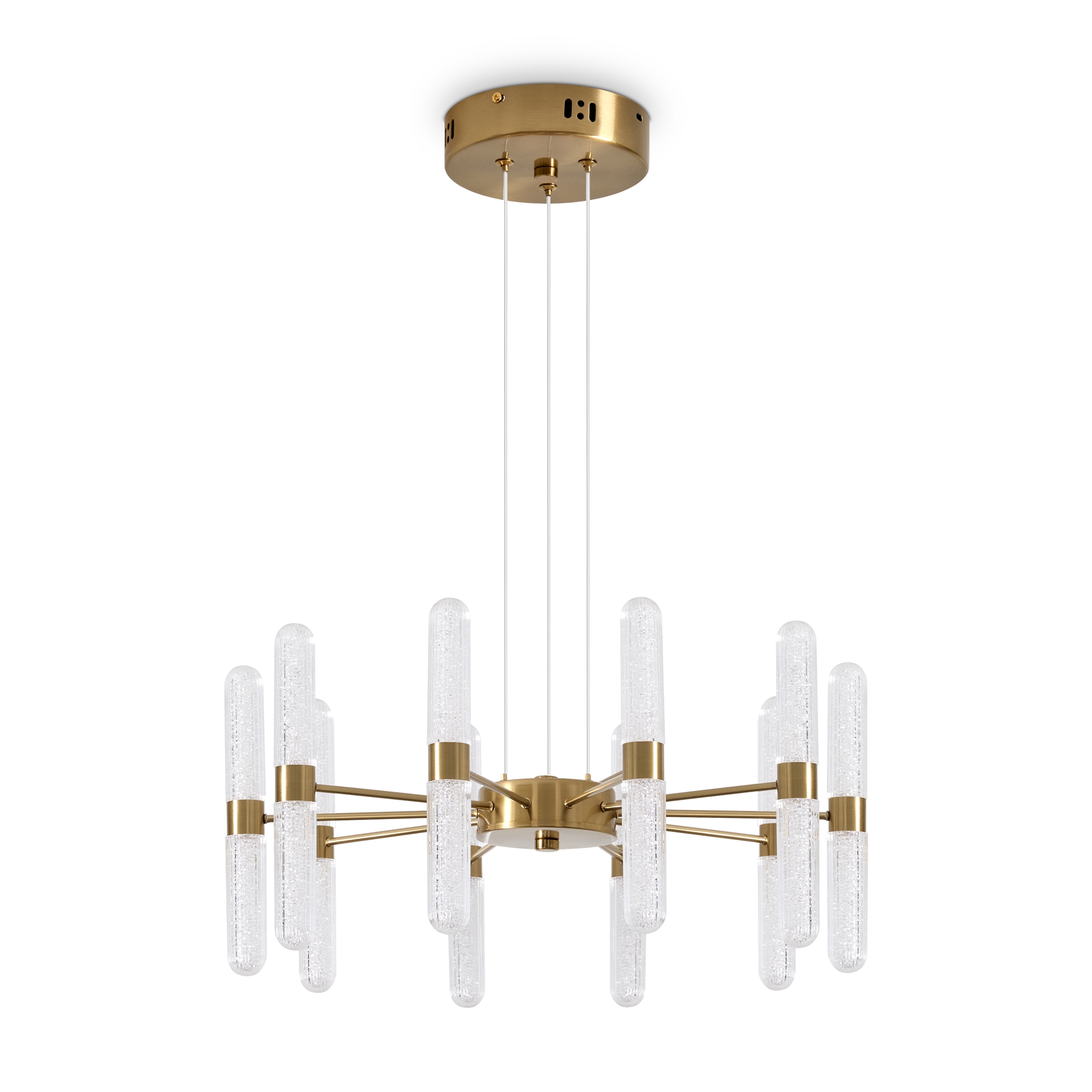 Арматура — металл в цвете латунь и никель. Основной акцент в дизайне люстр Alias сделан на акриловые плафоны, эффект пузырьков. Встроенный LED модуль 2700K. 2 дизайна подвесных светильников.