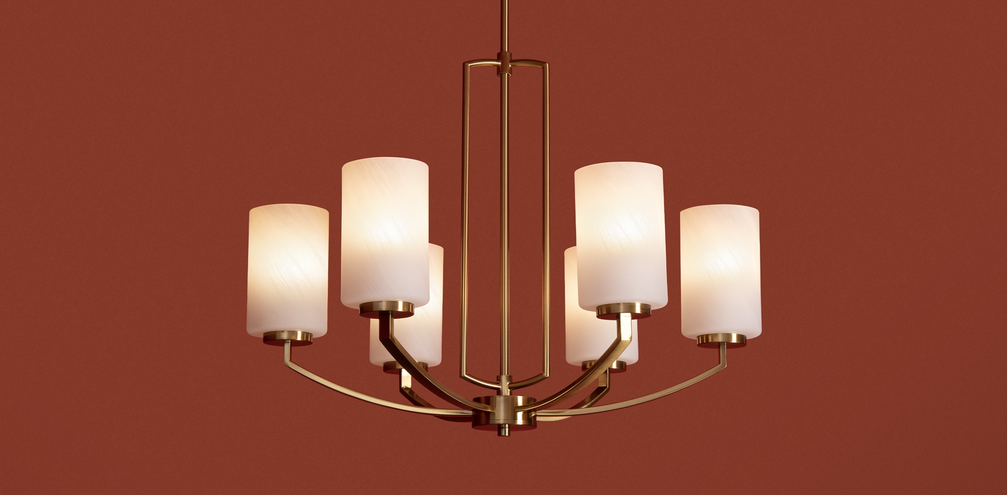 Арматура — металл, латунь. Стеклянные белые абажуры рассеивают свет. Центральное основание создаёт воздушность конструкции. Лампы E14 (5/6 шт., не в комплекте).
